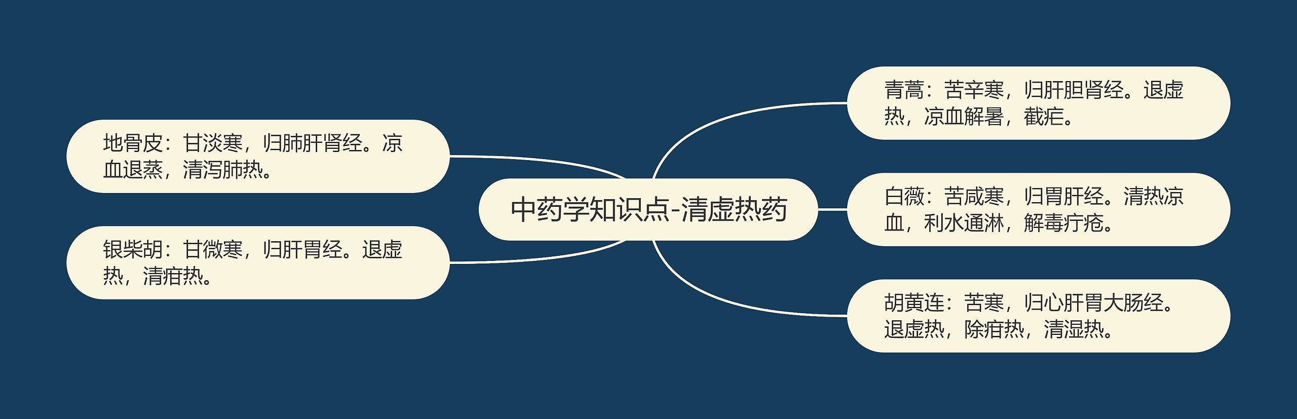 清虚热药是中药学的重要知识点,为了帮助大家了解,树图思维导图小编为大家整理出以下相关内容: 青蒿:苦辛寒,归肝胆肾经。退虚热,凉血解暑,截疟。 地骨皮:甘淡寒,归肺肝肾经。凉血退蒸,清泻肺热。 白薇:苦咸寒,归胃肝经。清热凉血,利水通淋,解毒疔疮。 银柴胡:甘微寒,归肝胃经。退虚热,清疳热。