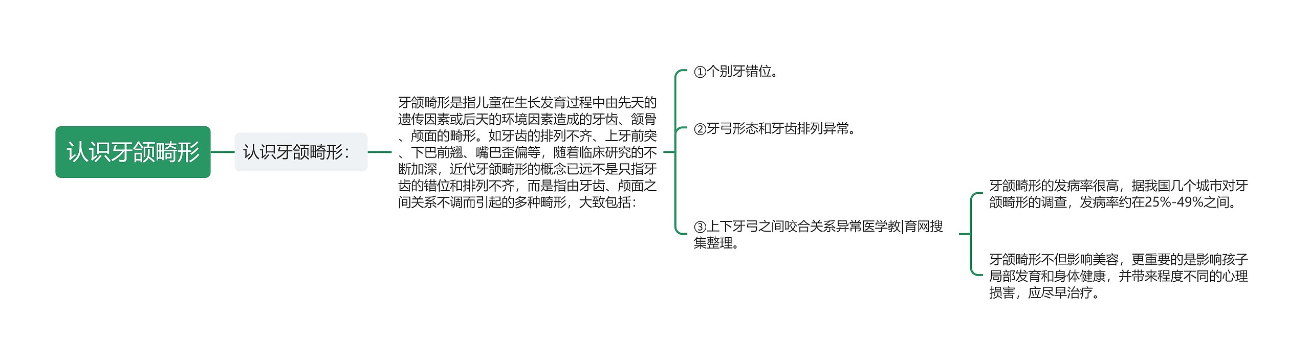 树图思维导图提供《认识牙颌畸形》在线思维导图免费制作,点击“编辑”按钮,可对《认识牙颌畸形》进行在线思维导图编辑,本思维导图属于思维导图模板主题,文件编号是:6567393e51755f6b6ef2496ce8382a79