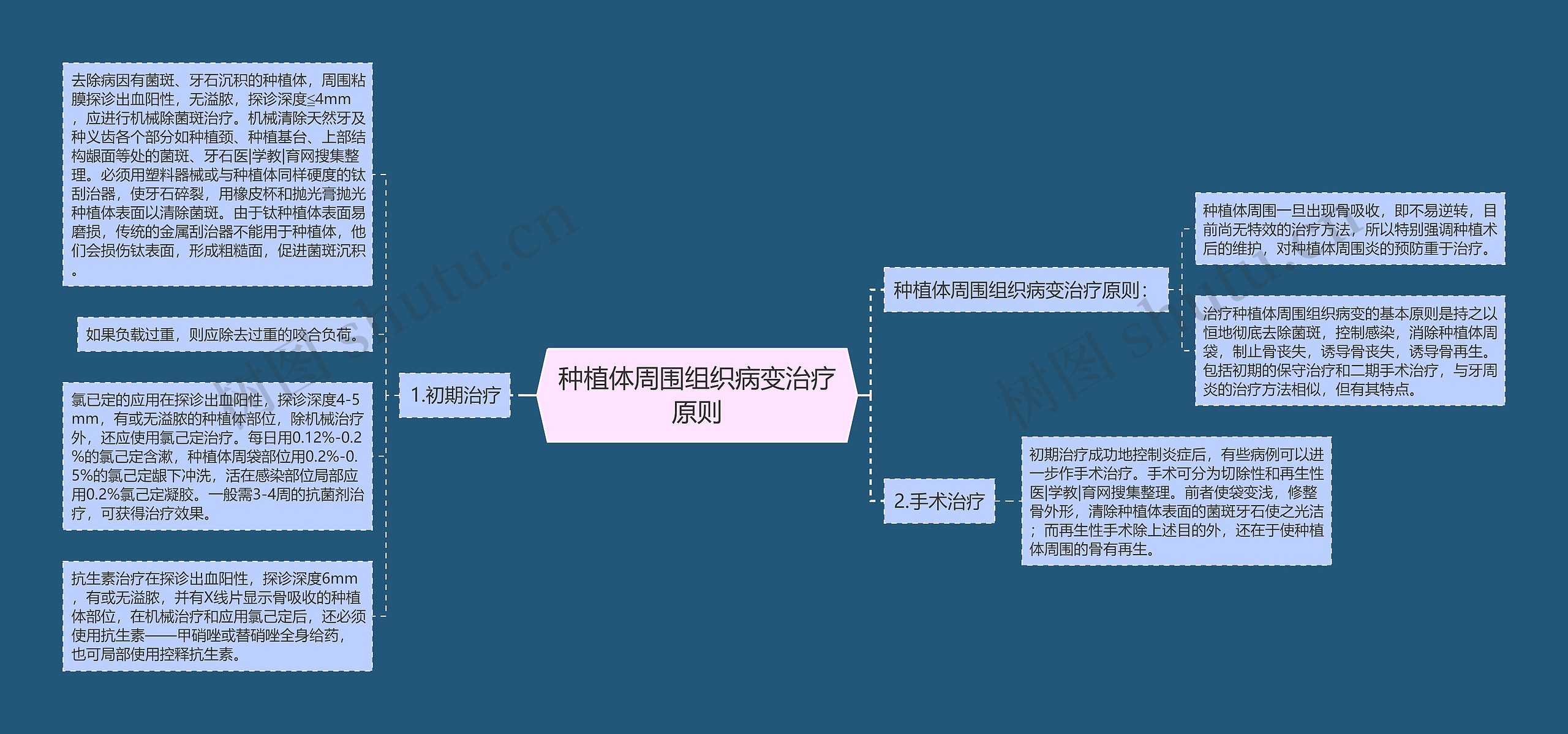 树图思维导图提供《种植体周围组织病变治疗原则》在线思维导图免费制作,点击“编辑”按钮,可对《种植体周围组织病变治疗原则》进行在线思维导图编辑,本思维导图属于思维导图模板主题,文件编号是:dc0d96597f6fe675b3e0a5b621db047b