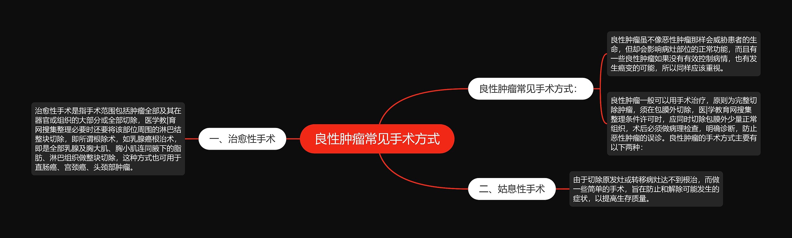 树图思维导图提供《良性肿瘤常见手术方式》在线思维导图免费制作,点击“编辑”按钮,可对《良性肿瘤常见手术方式》进行在线思维导图编辑,本思维导图属于思维导图模板主题,文件编号是:c6f9f3fb049b40481075c06c8bfb9598