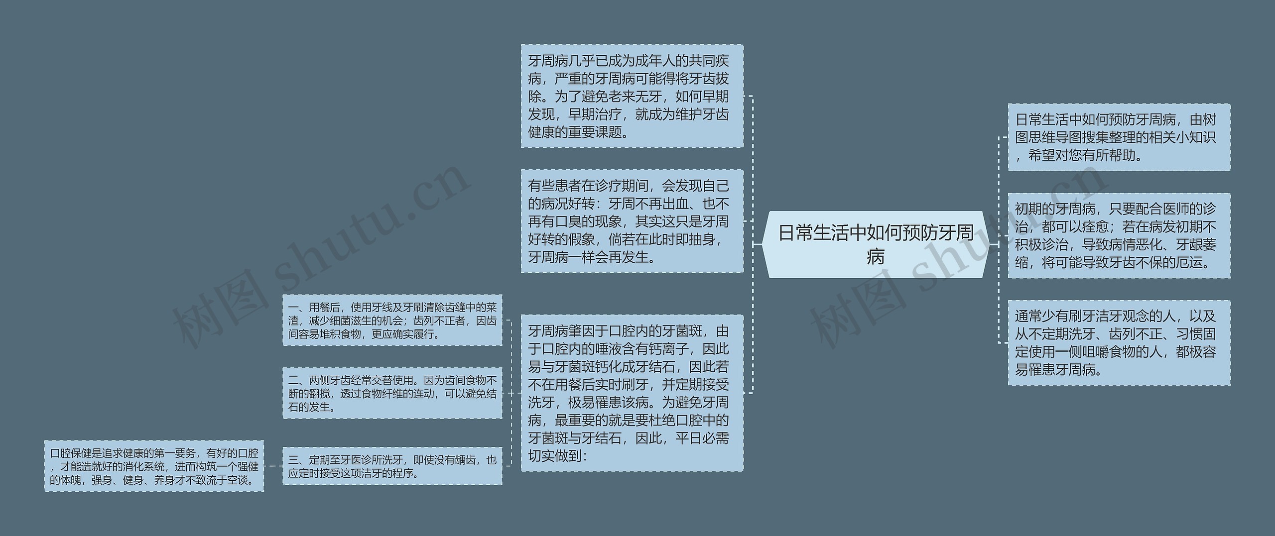 日常生活中如何预防牙周病,由树图思维导图搜集整理的相关小知识,希望对您有所帮助。