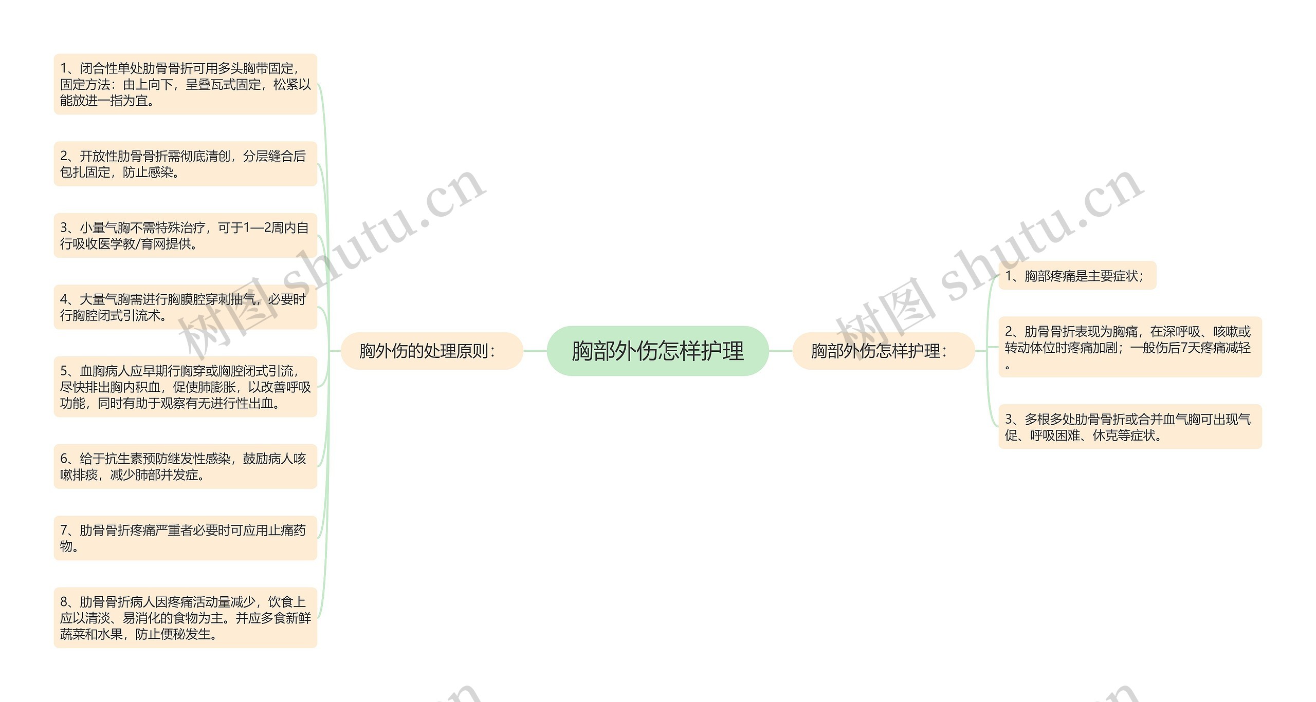 树图思维导图提供《胸部外伤怎样护理》在线思维导图免费制作,点击“编辑”按钮,可对《胸部外伤怎样护理》进行在线思维导图编辑,本思维导图属于思维导图模板主题,文件编号是:aba99eb6b00d9d24539646bbf5c2c48e
