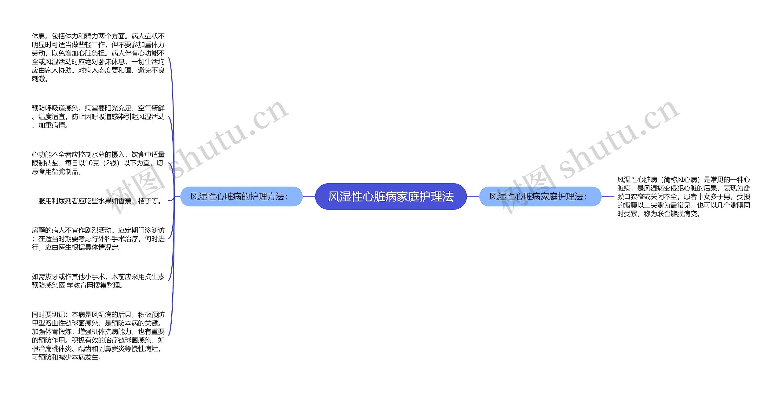树图思维导图提供《风湿性心脏病家庭护理法》在线思维导图免费制作,点击“编辑”按钮,可对《风湿性心脏病家庭护理法》进行在线思维导图编辑,本思维导图属于思维导图模板主题,文件编号是:08a0c220d708bf0b9265946b2757f53a