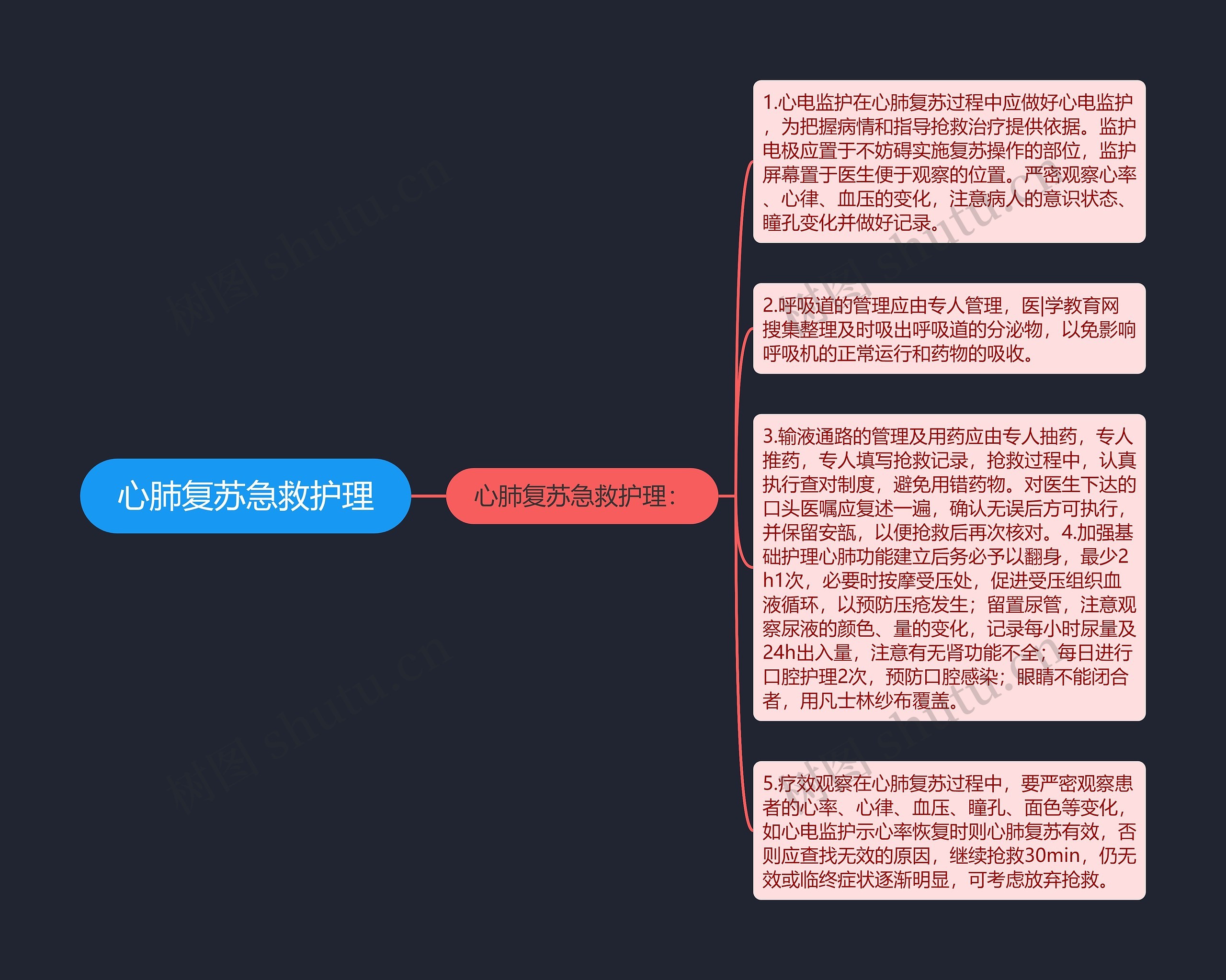 3.输液通路的管理及用药应由专人抽药,专人推药,专人填写抢救记录,抢救过程中,认真执行查对制度,避免用错药物。对医生下达的口头医嘱应复述一遍,确认无误后方可执行,并保留安瓿,以便抢救后再次核对。4.加强基础护理心肺功能建立后务必予以翻身,最少2h1次,必要时按摩受压处,促进受压组织血液循环,以预防压疮发生;留置尿管,注意观察尿液的颜色、量的变化,记录每小时尿量及24h出入量,注意有无肾功能不全;每日进行口腔护理2次,预防口腔感染;眼睛不能闭合者,用凡士林纱布覆盖。