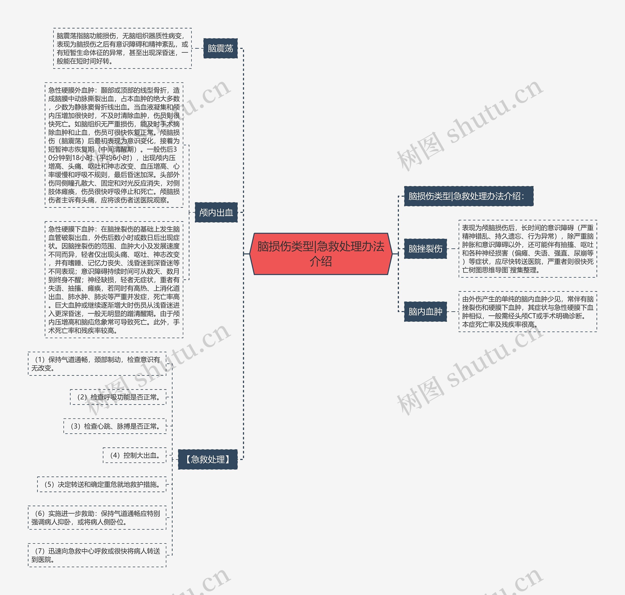 树图思维导图提供《脑损伤类型|急救处理办法介绍》在线思维导图免费制作,点击“编辑”按钮,可对《脑损伤类型|急救处理办法介绍》进行在线思维导图编辑,本思维导图属于思维导图模板主题,文件编号是:d643c3038ed3e4ebf6411dad0d03fd64