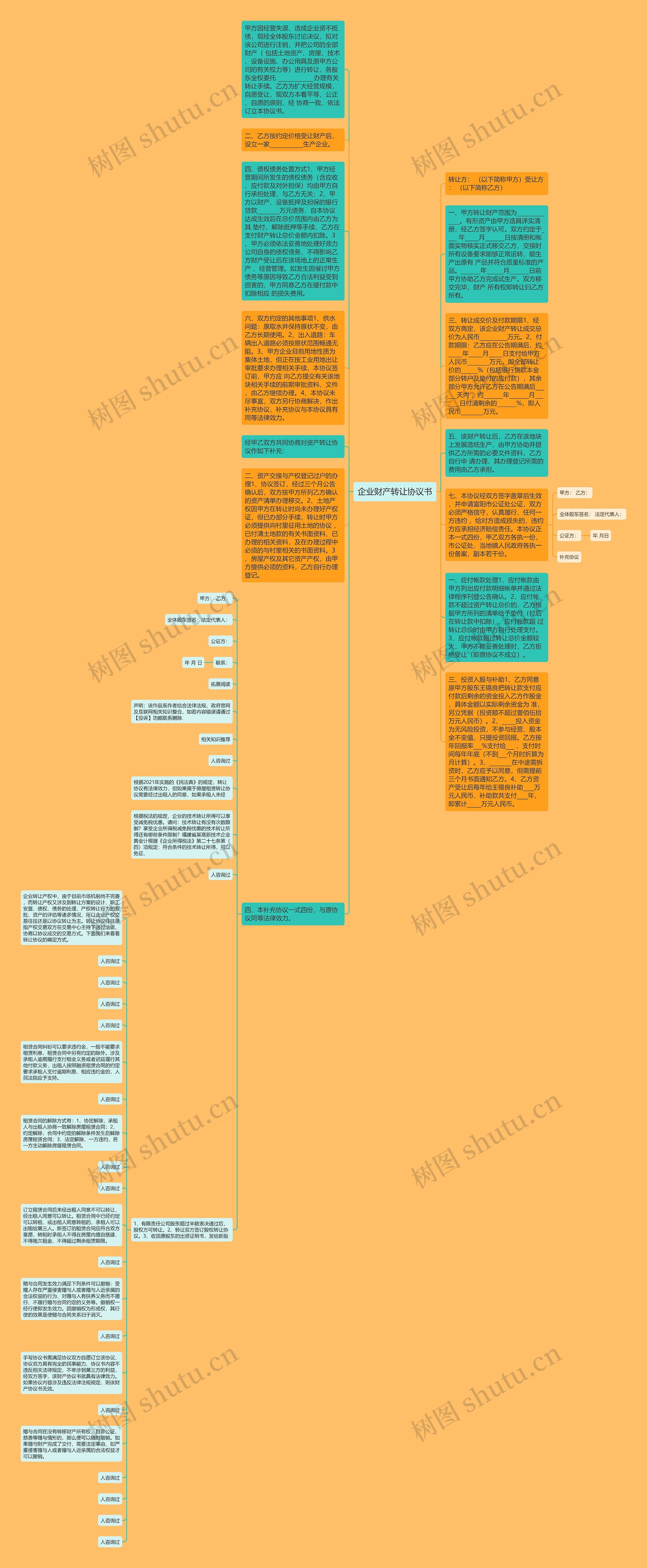 三、转让成交价及付款期限1、经双方商定,该企业财产转让成交总价为人民币__________万元。2、付款期限:乙方应在公告期满后,约______年_____月_____日支付给甲方人民币________万元,即全部转让 价的______%(包括银行贷款本金部分转户及垫付的应付款),其余部分甲方允许乙方在公告期满后______天内 ,约_______年_______月_______日付清剩余的_______%,即人民币________万元。