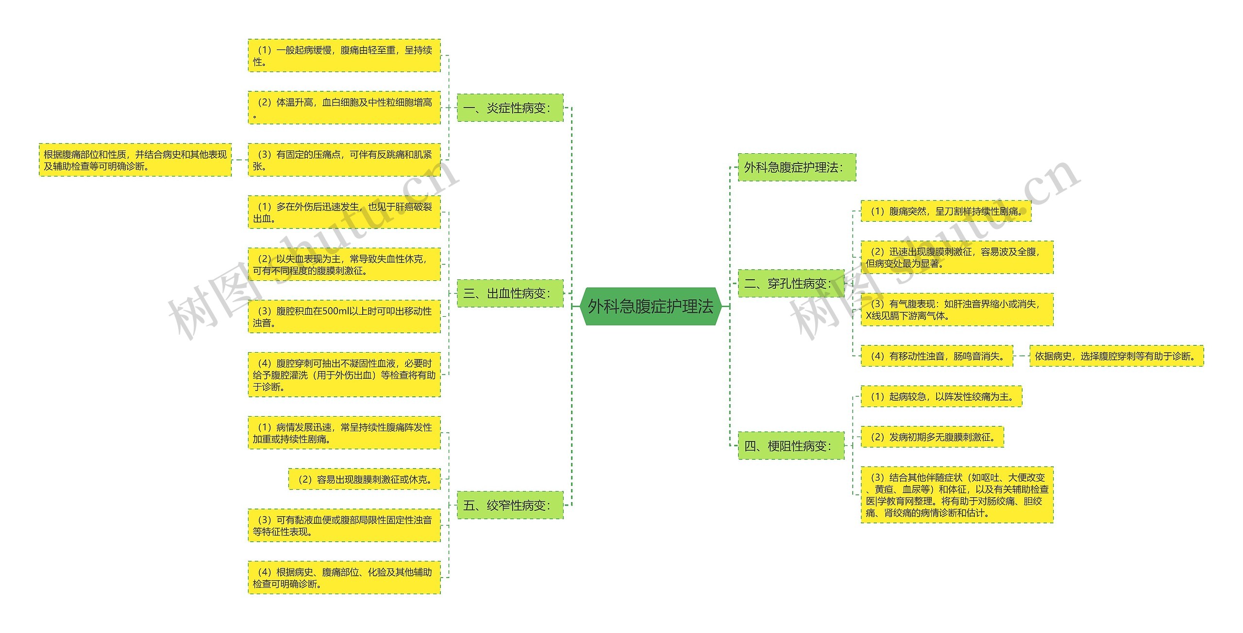 树图思维导图提供《外科急腹症护理法》在线思维导图免费制作,点击“编辑”按钮,可对《外科急腹症护理法》进行在线思维导图编辑,本思维导图属于思维导图模板主题,文件编号是:4d7b1cc82bfb267fef43f3af2da13075