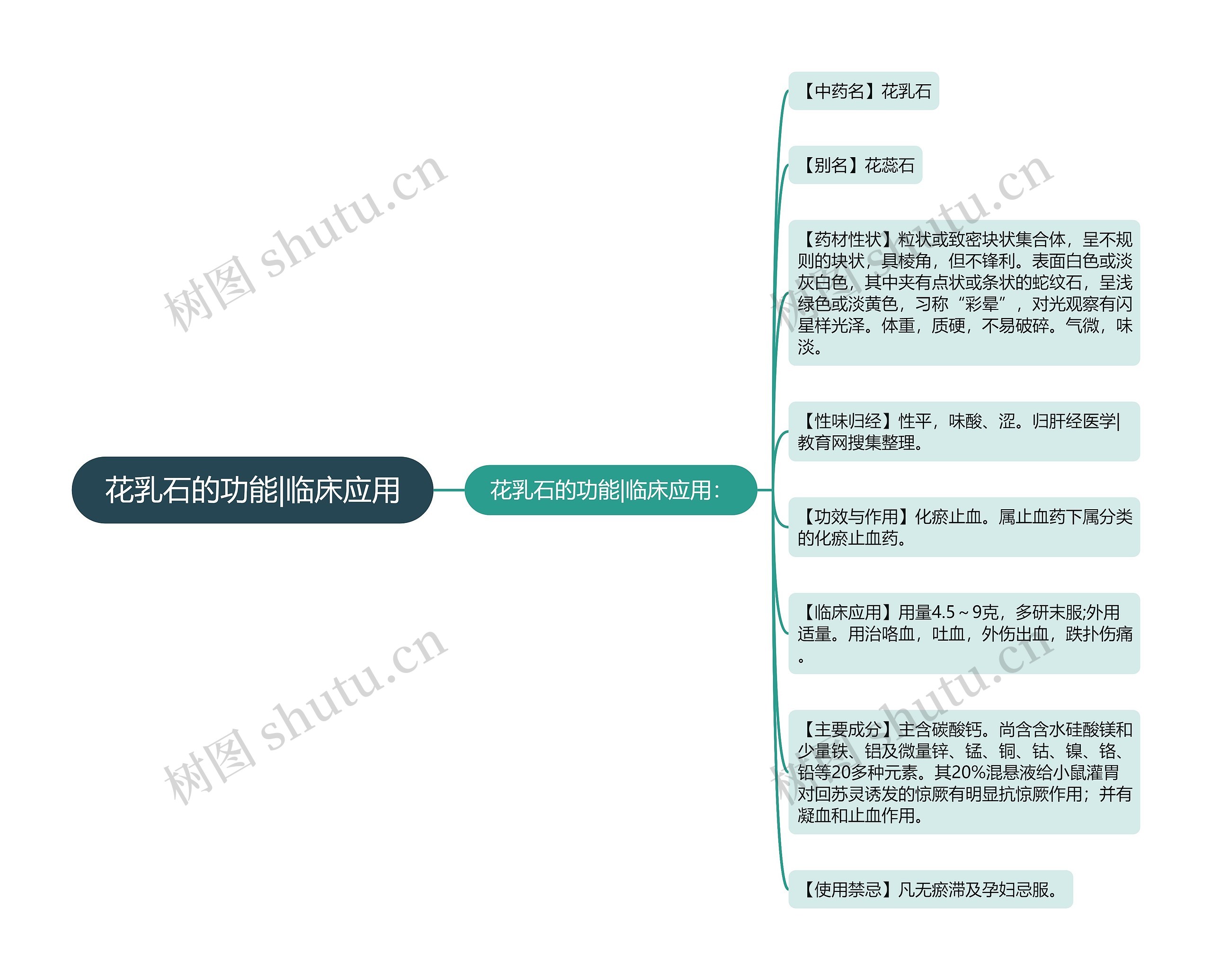 树图思维导图提供《花乳石的功能|临床应用》在线思维导图免费制作,点击“编辑”按钮,可对《花乳石的功能|临床应用》进行在线思维导图编辑,本思维导图属于思维导图模板主题,文件编号是:8a89b04965413f44c65eb24968e12ab8