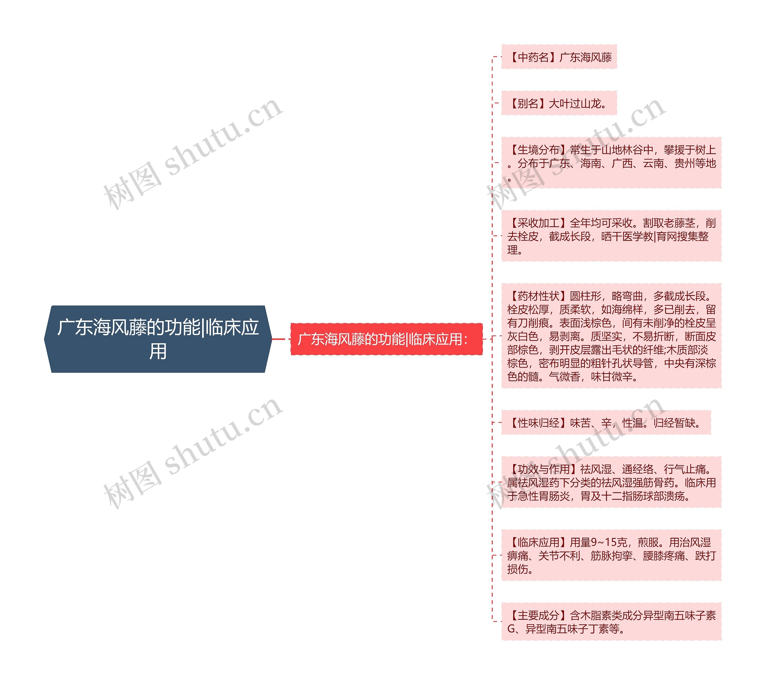 树图思维导图提供《广东海风藤的功能|临床应用》在线思维导图免费制作,点击“编辑”按钮,可对《广东海风藤的功能|临床应用》进行在线思维导图编辑,本思维导图属于思维导图模板主题,文件编号是:b7a1a00d8653261176c71d74bed09c8a