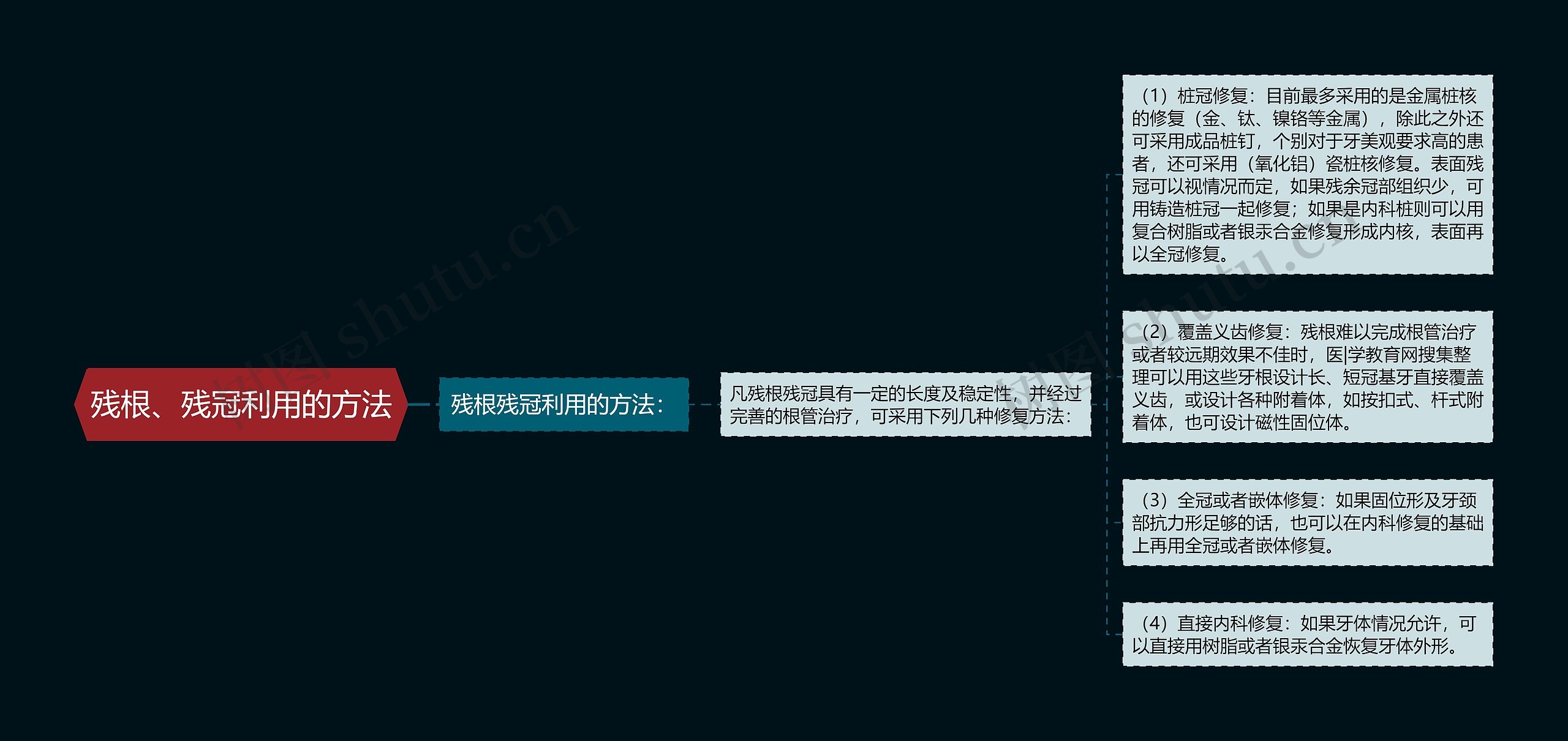 树图思维导图提供《残根、残冠利用的方法》在线思维导图免费制作,点击“编辑”按钮,可对《残根、残冠利用的方法》进行在线思维导图编辑,本思维导图属于思维导图模板主题,文件编号是:b3709cab66a19bbc4edddbdf8cb495fb