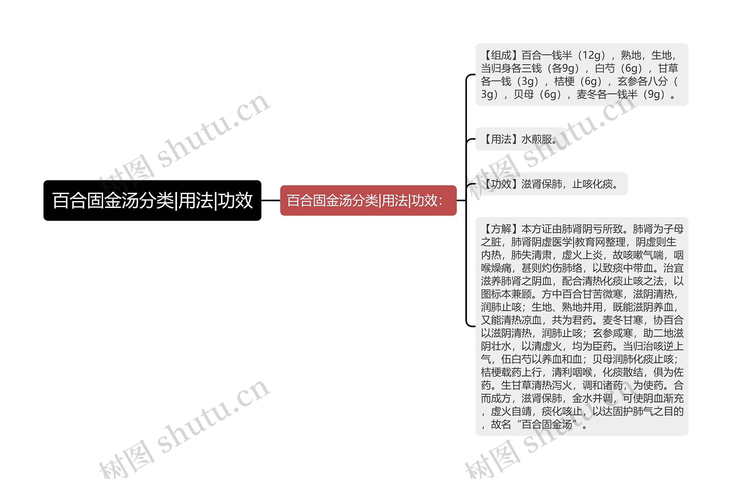 树图思维导图提供《百合固金汤分类|用法|功效》在线思维导图免费制作,点击“编辑”按钮,可对《百合固金汤分类|用法|功效》进行在线思维导图编辑,本思维导图属于思维导图模板主题,文件编号是:ef9fda13f0697acfe4f5c4fcc2021dc8