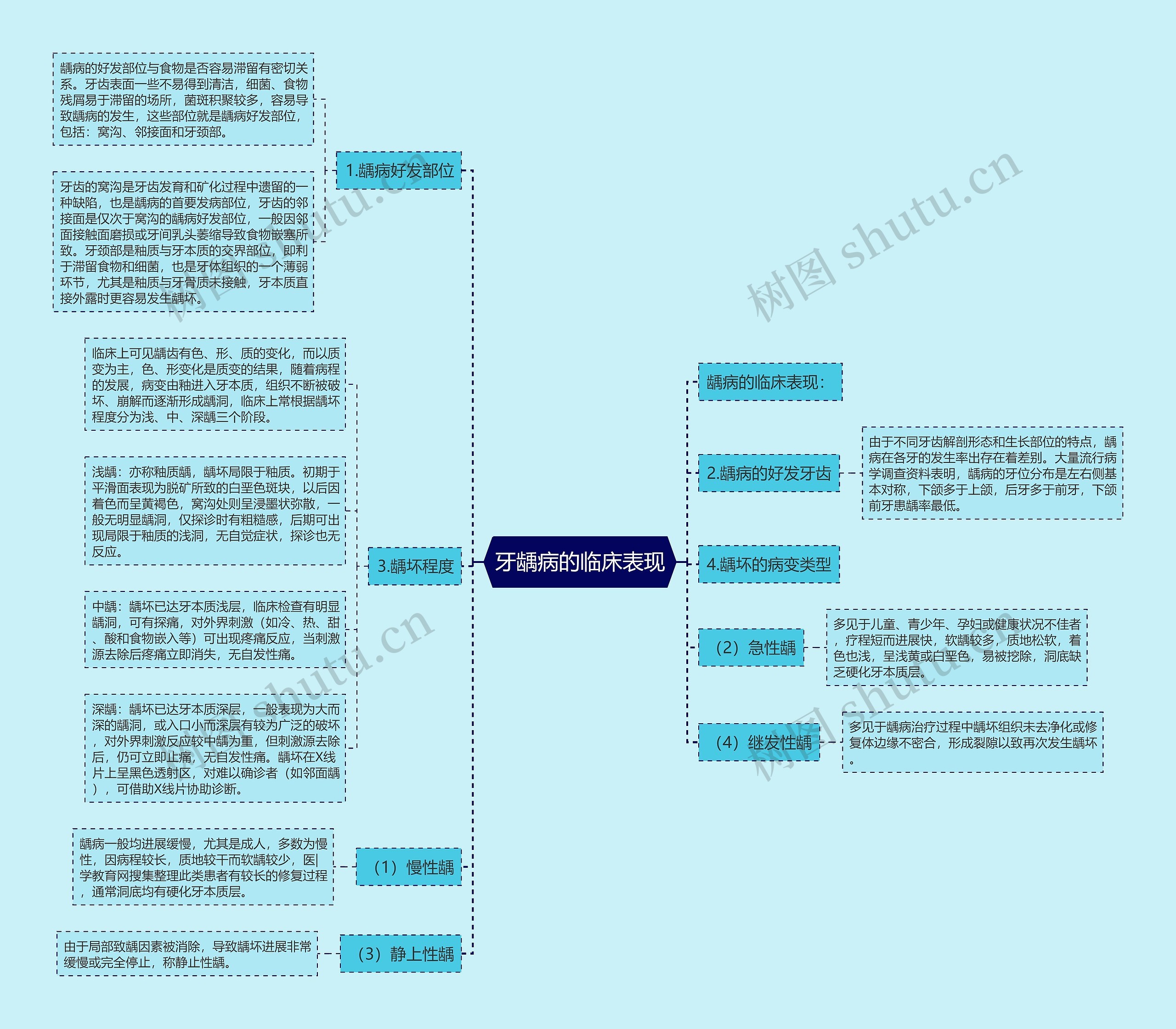 树图思维导图提供《牙龋病的临床表现》在线思维导图免费制作,点击“编辑”按钮,可对《牙龋病的临床表现》进行在线思维导图编辑,本思维导图属于思维导图模板主题,文件编号是:bae789f844b86e47b30c83a80ccc9472