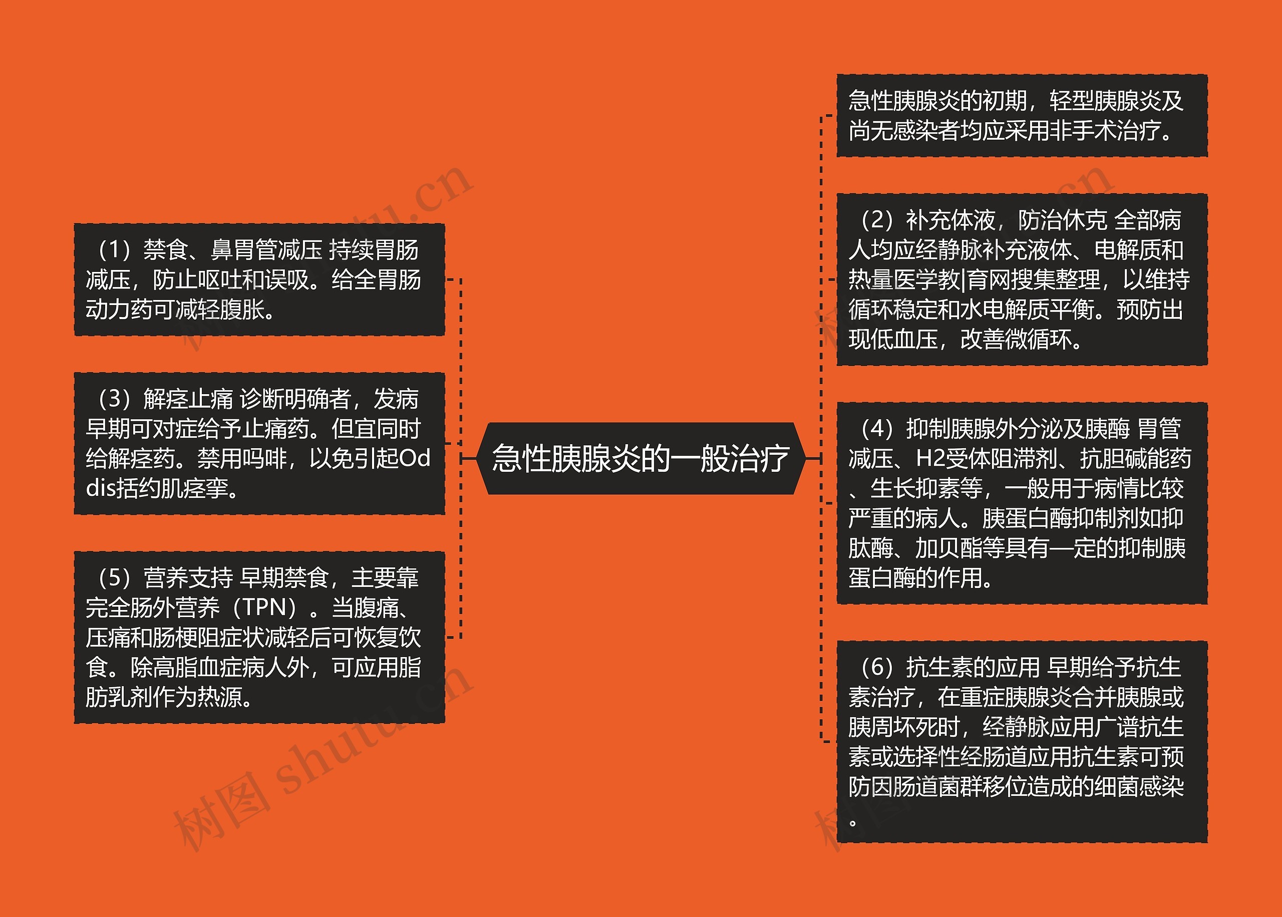树图思维导图提供《急性胰腺炎的一般治疗》在线思维导图免费制作,点击“编辑”按钮,可对《急性胰腺炎的一般治疗》进行在线思维导图编辑,本思维导图属于思维导图模板主题,文件编号是:9b1918b2819418414f5d21d7bf17dbd0