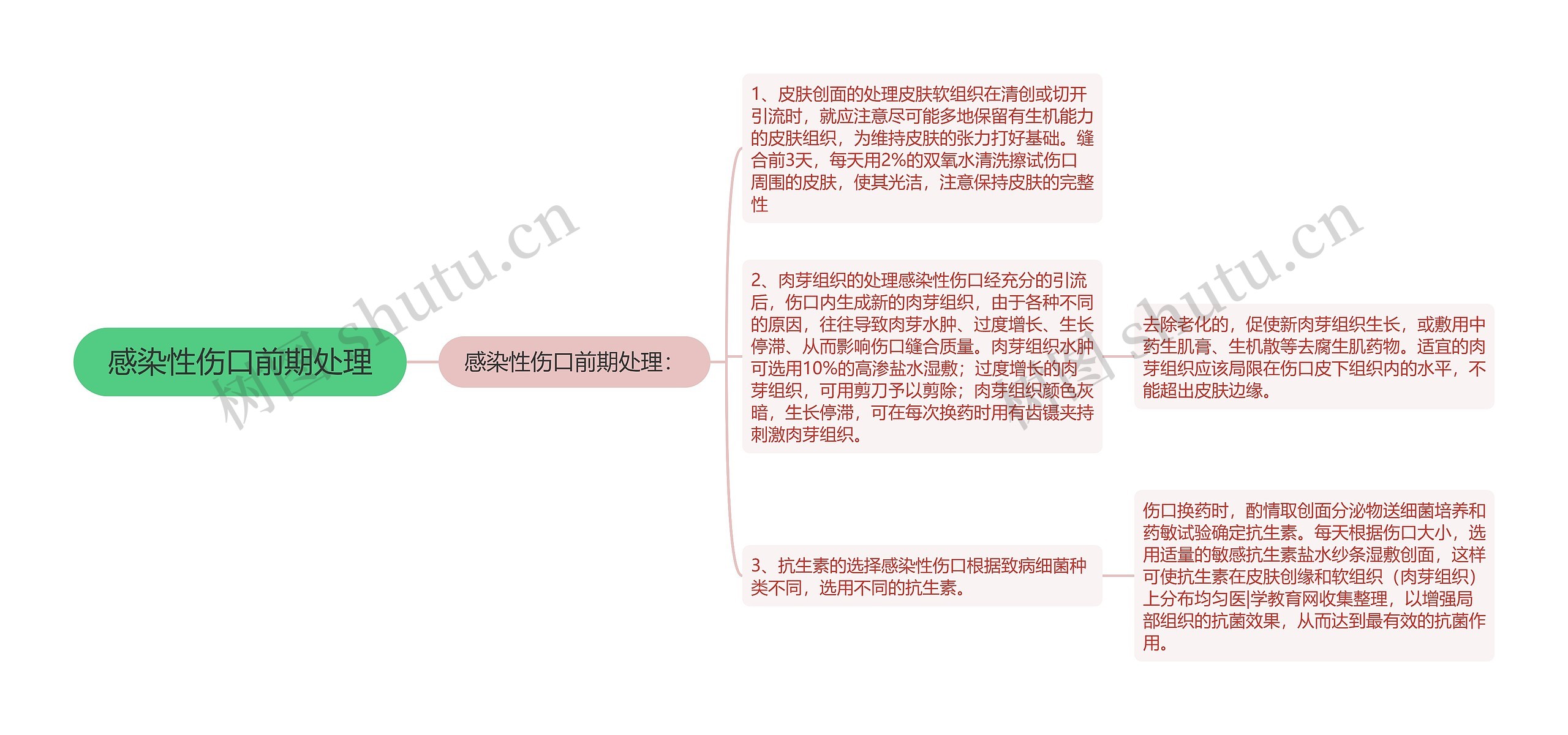 树图思维导图提供《感染性伤口前期处理》在线思维导图免费制作,点击“编辑”按钮,可对《感染性伤口前期处理》进行在线思维导图编辑,本思维导图属于思维导图模板主题,文件编号是:2fe91d441c7ebe9dd70acd9a7e40e820