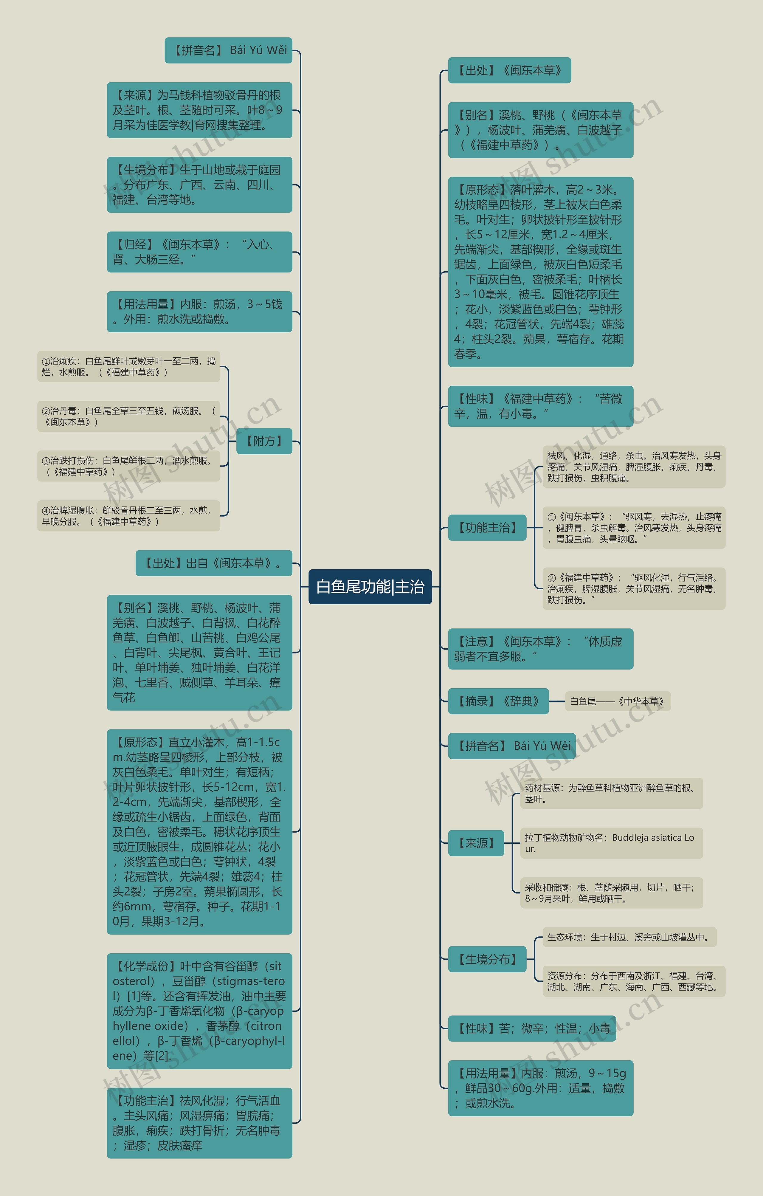 ①治痢疾:白鱼尾鲜叶或嫩芽叶一至二两,捣烂,水煎服。(《福建中草药》)