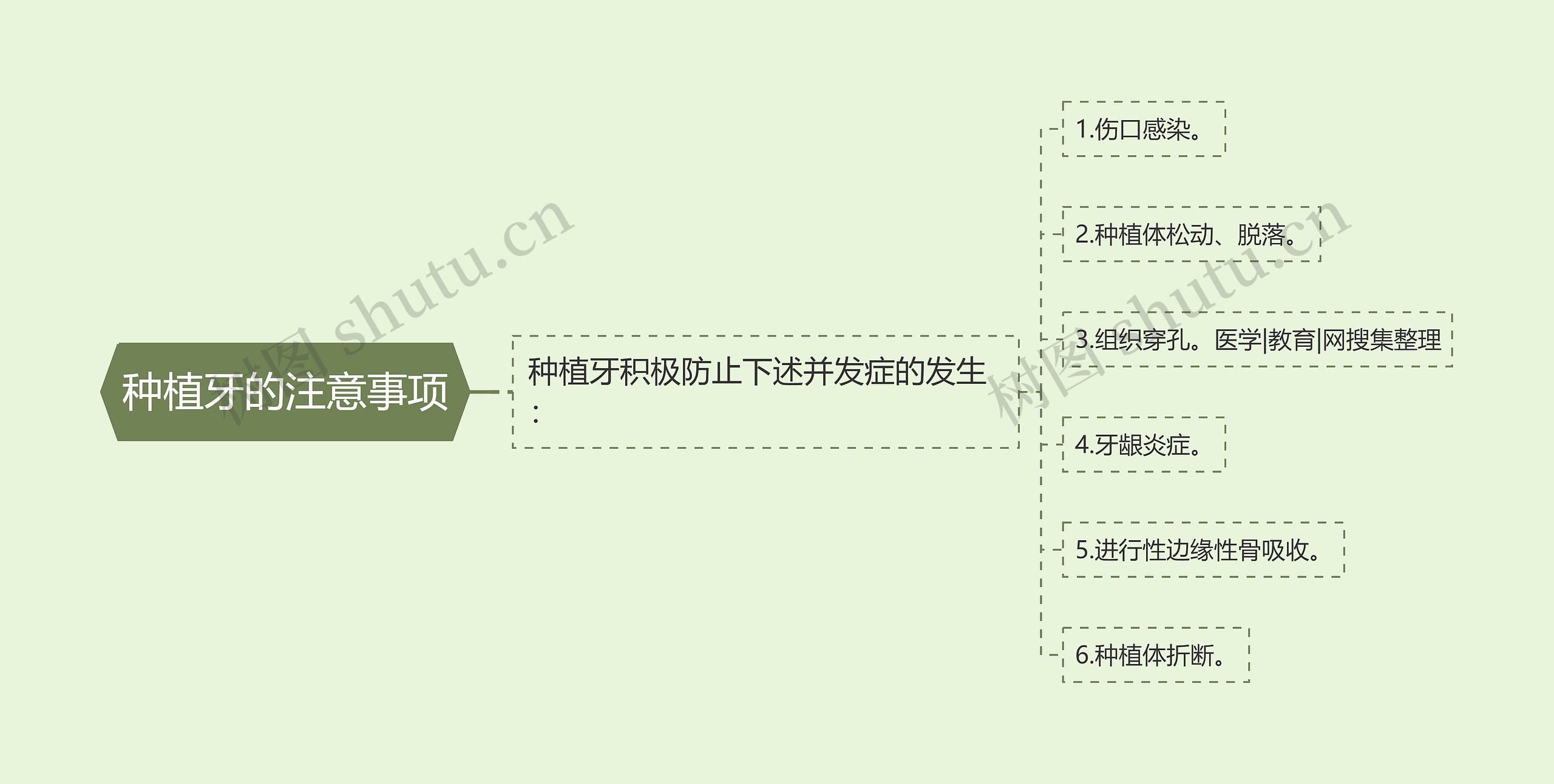 树图思维导图提供《种植牙的注意事项》在线思维导图免费制作,点击“编辑”按钮,可对《种植牙的注意事项》进行在线思维导图编辑,本思维导图属于思维导图模板主题,文件编号是:fad2910df266eabb12752a07de8c7bf1