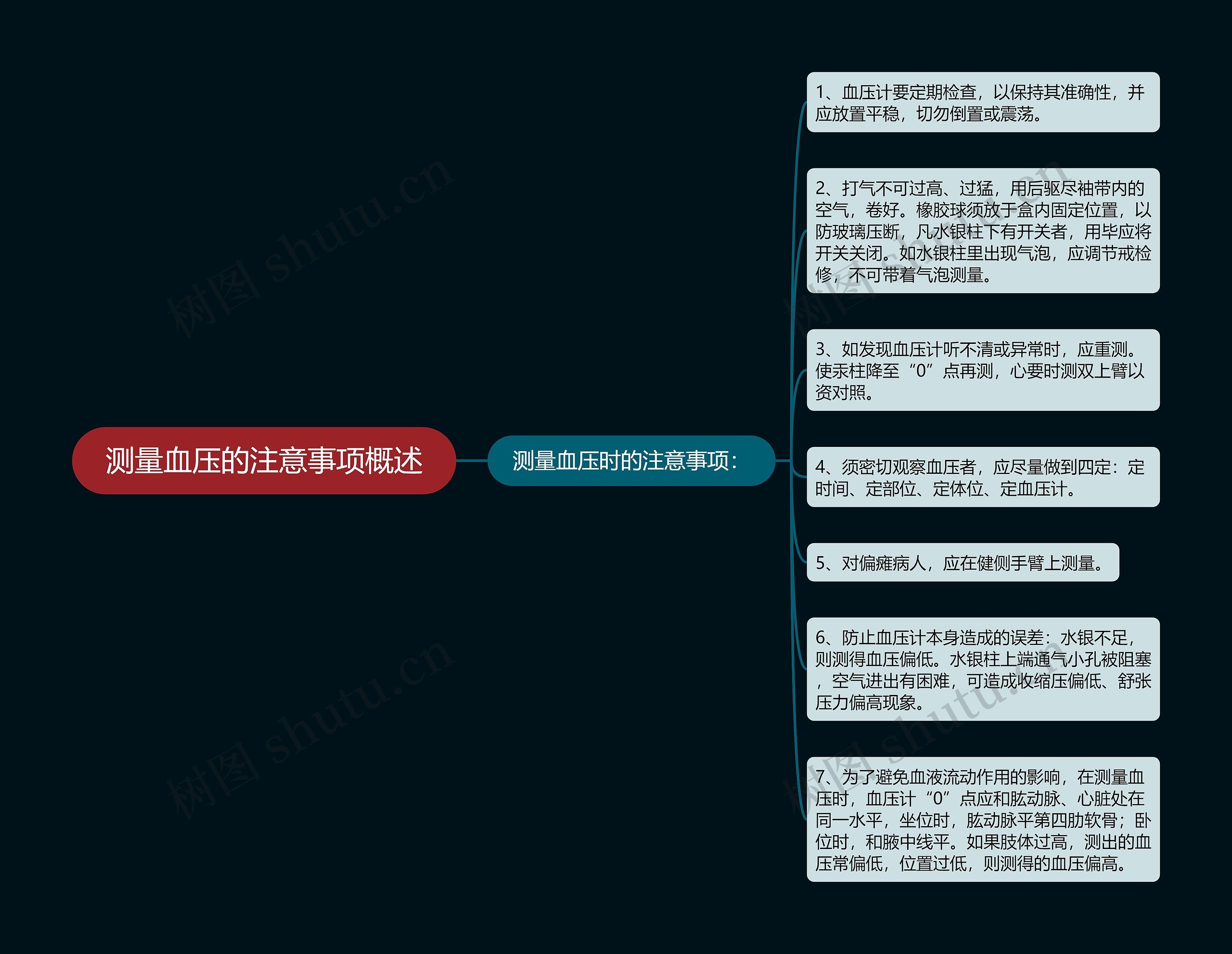 树图思维导图提供《测量血压的注意事项概述》在线思维导图免费制作,点击“编辑”按钮,可对《测量血压的注意事项概述》进行在线思维导图编辑,本思维导图属于思维导图模板主题,文件编号是:e037c1fe1b677172d0c5d17178d805e6