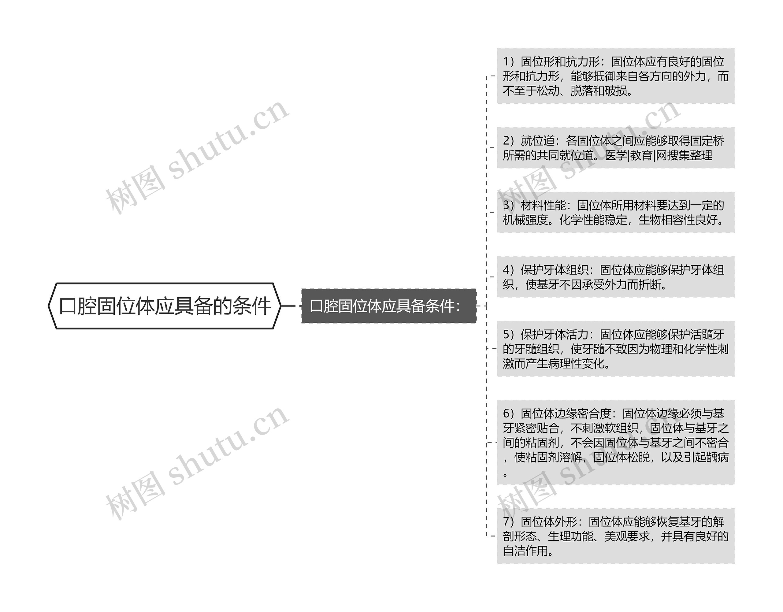 树图思维导图提供《口腔固位体应具备的条件》在线思维导图免费制作,点击“编辑”按钮,可对《口腔固位体应具备的条件》进行在线思维导图编辑,本思维导图属于思维导图模板主题,文件编号是:ce4ea1e0900cdbac93e76ac6fccf2f15