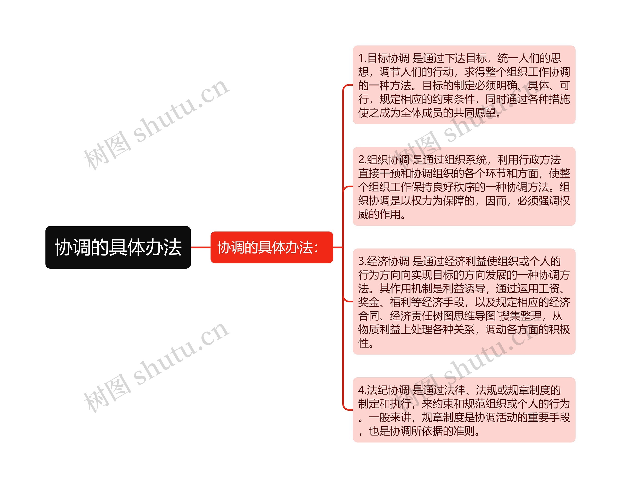 树图思维导图提供《协调的具体办法》在线思维导图免费制作,点击“编辑”按钮,可对《协调的具体办法》进行在线思维导图编辑,本思维导图属于思维导图模板主题,文件编号是:9dc48bcbad2f68dc1dc101c422295742