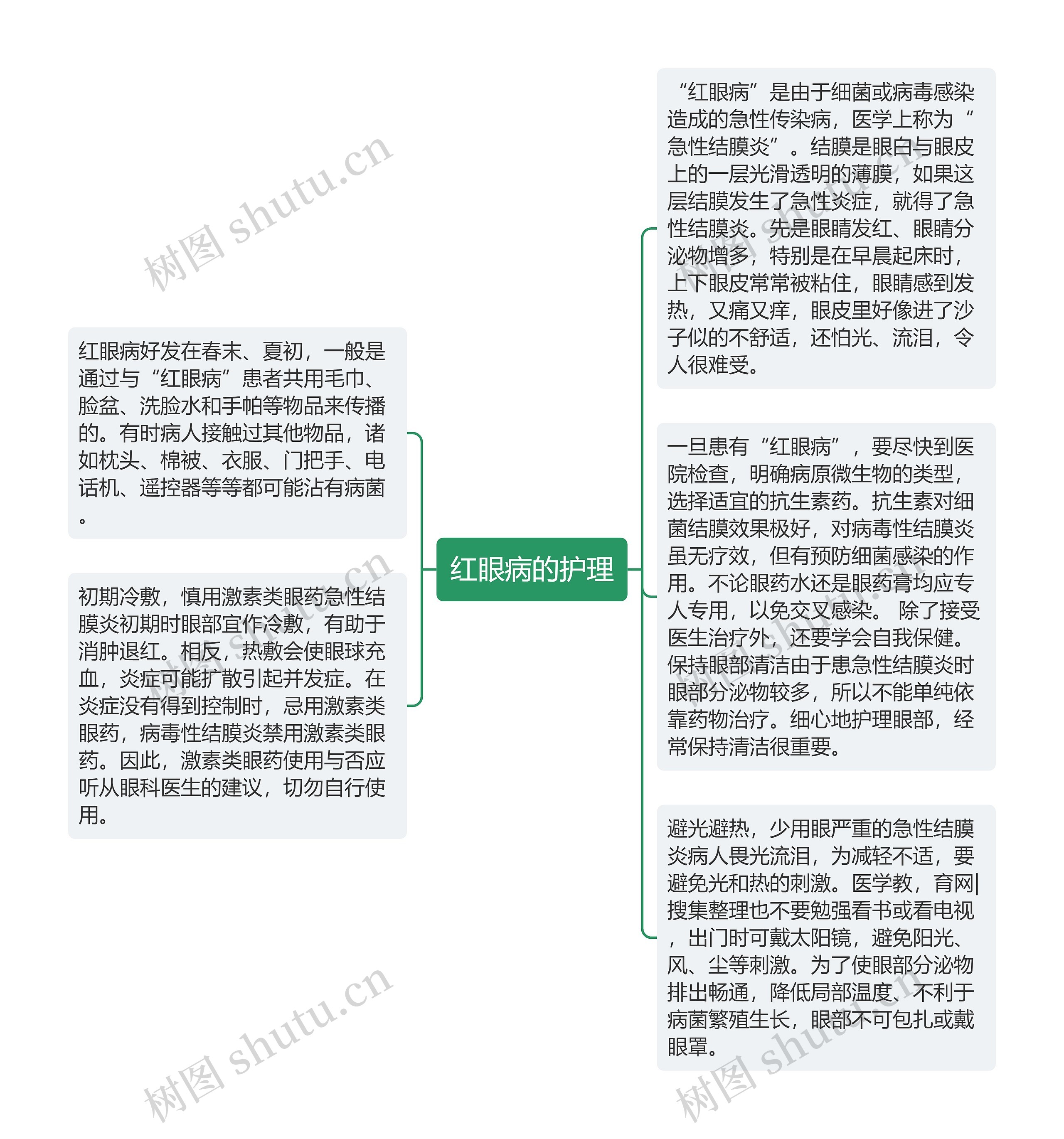 一旦患有“红眼病”,要尽快到医院检查,明确病原微生物的类型,选择适宜的抗生素药。抗生素对细菌结膜效果极好,对病毒性结膜炎虽无疗效,但有预防细菌感染的作用。不论眼药水还是眼药膏均应专人专用,以免交叉感染。 除了接受医生治疗外,还要学会自我保健。保持眼部清洁由于患急性结膜炎时眼部分泌物较多,所以不能单纯依靠药物治疗。细心地护理眼部,经常保持清洁很重要。