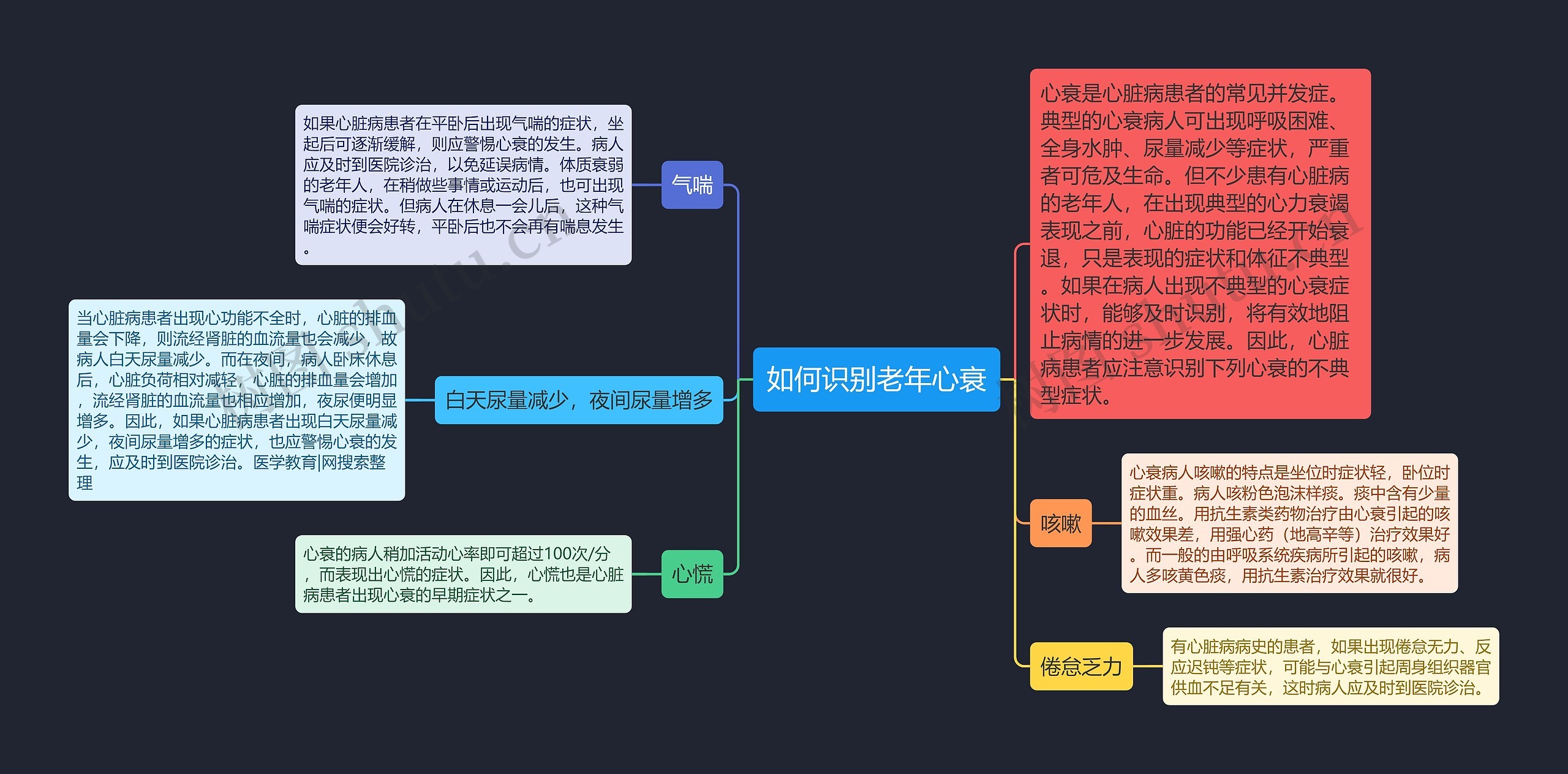 树图思维导图提供《如何识别老年心衰》在线思维导图免费制作,点击“编辑”按钮,可对《如何识别老年心衰》进行在线思维导图编辑,本思维导图属于思维导图模板主题,文件编号是:8fc2bc627b024112d98d03fa82e8b5d9