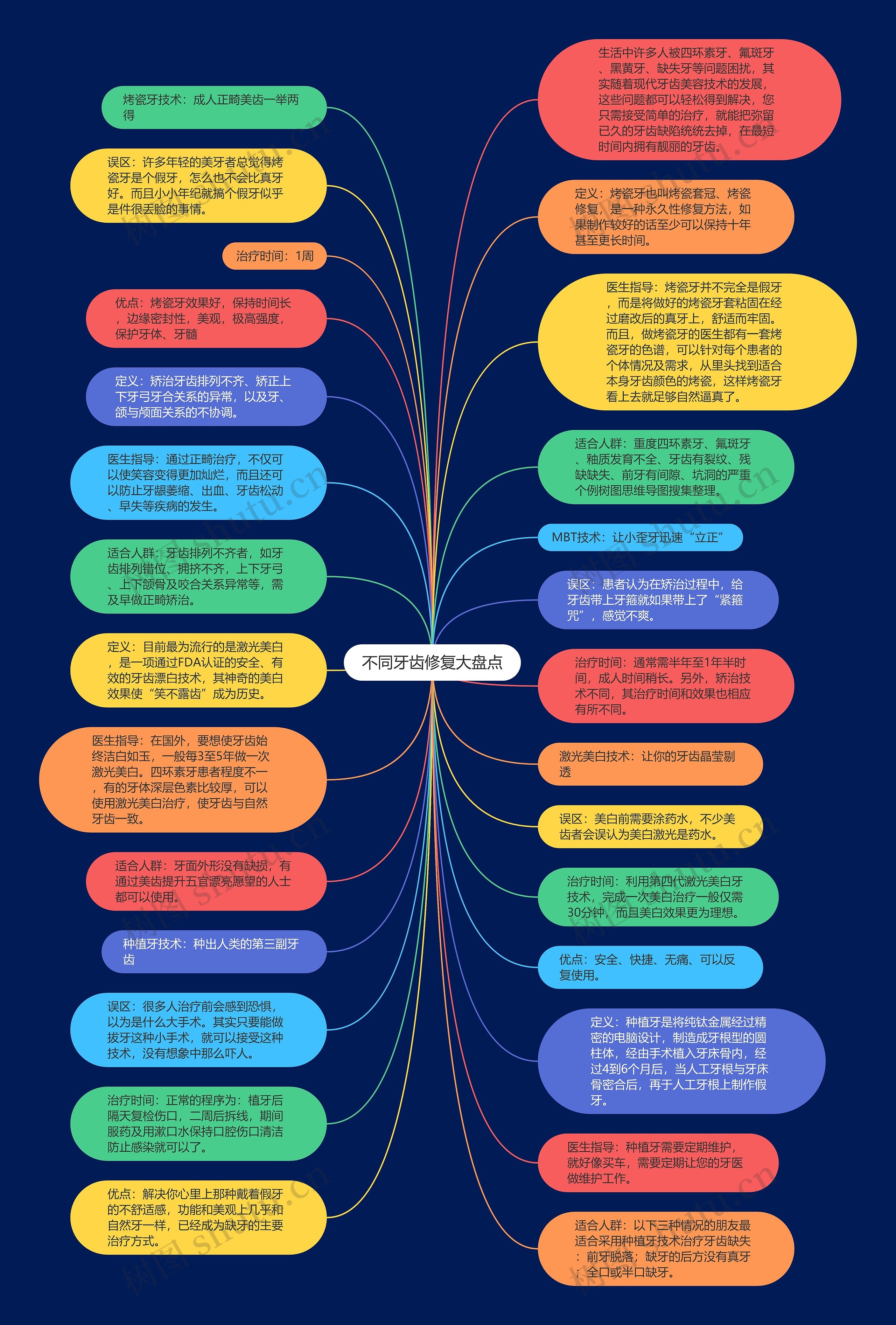 适合人群:重度四环素牙、氟斑牙、釉质发育不全、牙齿有裂纹、残缺缺失、前牙有间隙、坑洞的严重个例树图思维导图搜集整理。