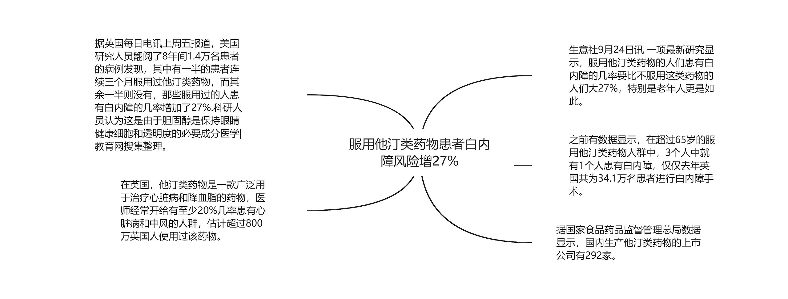 树图思维导图提供《服用他汀类药物患者白内障风险增27%》在线思维导图免费制作,点击“编辑”按钮,可对《服用他汀类药物患者白内障风险增27%》进行在线思维导图编辑,本思维导图属于思维导图模板主题,文件编号是:6f5a39d59c63fa2d7cb877f7e0ba26c2