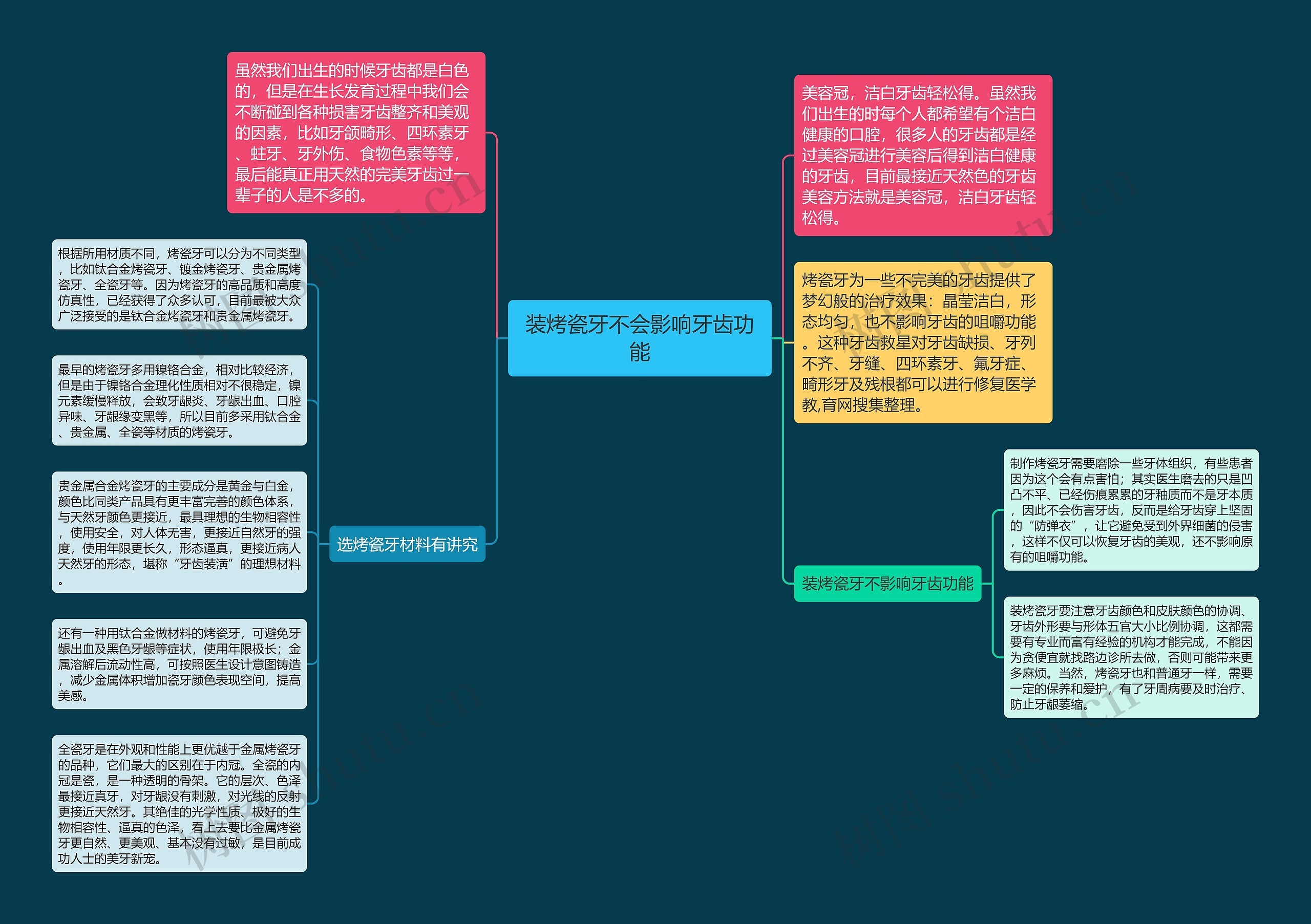 最早的烤瓷牙多用镍铬合金,相对比较经济,但是由于镍铬合金理化性质相对不很稳定,镍元素缓慢释放,会致牙龈炎、牙龈出血、口腔异味、牙龈缘变黑等,所以目前多采用钛合金、贵金属、全瓷等材质的烤瓷牙。
