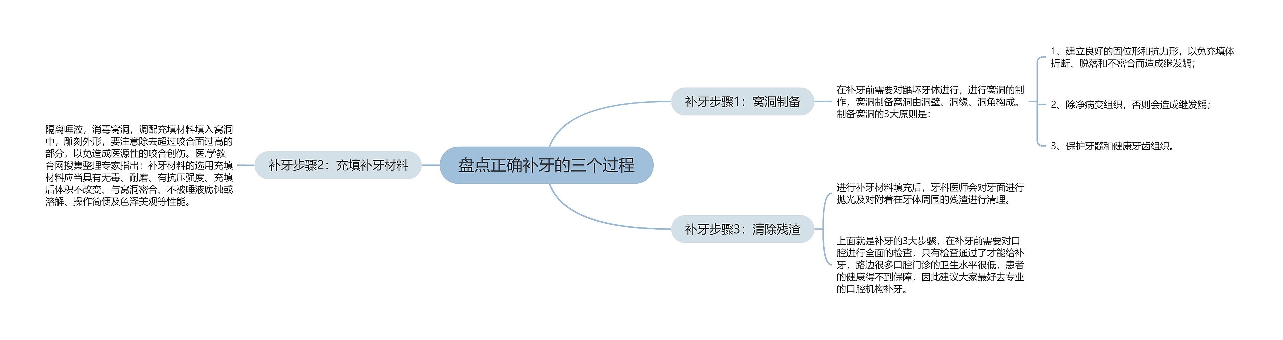 树图思维导图提供《盘点正确补牙的三个过程》在线思维导图免费制作,点击“编辑”按钮,可对《盘点正确补牙的三个过程》进行在线思维导图编辑,本思维导图属于思维导图模板主题,文件编号是:d3986876725ca8f592b8d11adb970f87