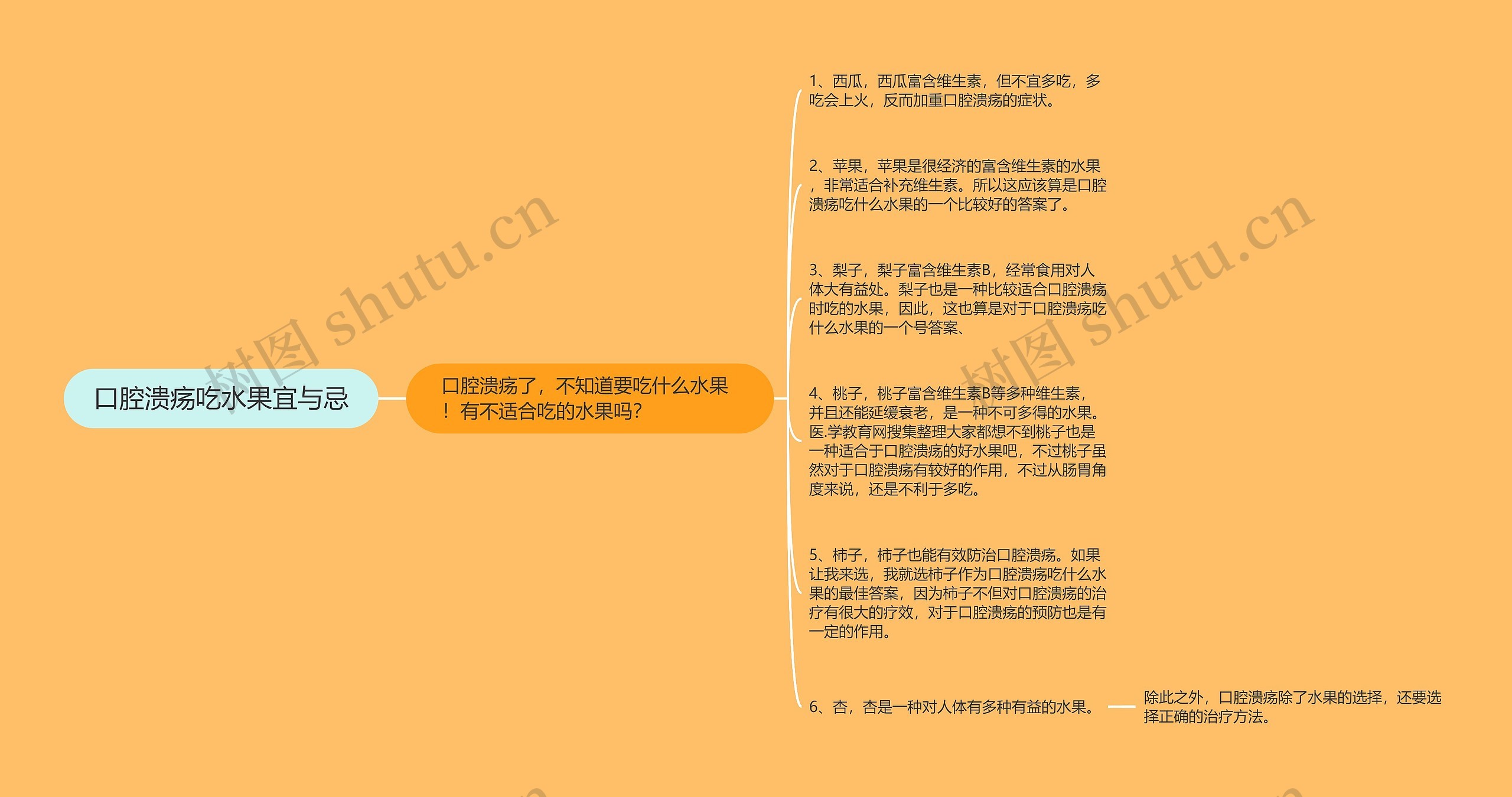 树图思维导图提供《口腔溃疡吃水果宜与忌》在线思维导图免费制作,点击“编辑”按钮,可对《口腔溃疡吃水果宜与忌》进行在线思维导图编辑,本思维导图属于思维导图模板主题,文件编号是:3781c972ab4529361dbde80844aac7ad