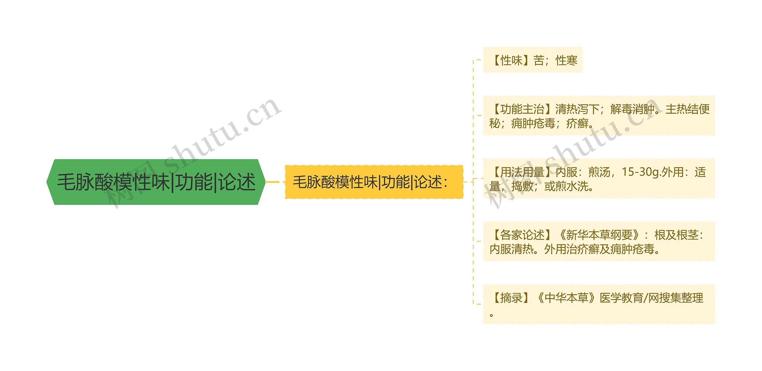 树图思维导图提供《毛脉酸模性味|功能|论述》在线思维导图免费制作,点击“编辑”按钮,可对《毛脉酸模性味|功能|论述》进行在线思维导图编辑,本思维导图属于思维导图模板主题,文件编号是:2a3ca1b60aebea0949b7be24747798b9