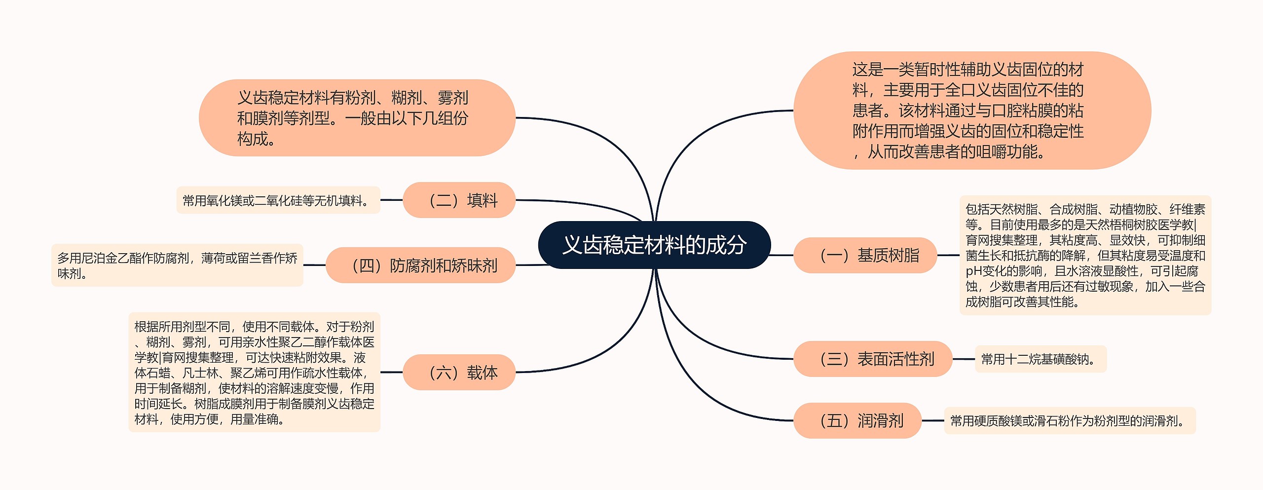 树图思维导图提供《义齿稳定材料的成分》在线思维导图免费制作,点击“编辑”按钮,可对《义齿稳定材料的成分》进行在线思维导图编辑,本思维导图属于思维导图模板主题,文件编号是:0bbd2097d5cb72cb2f38eca4bee6009c