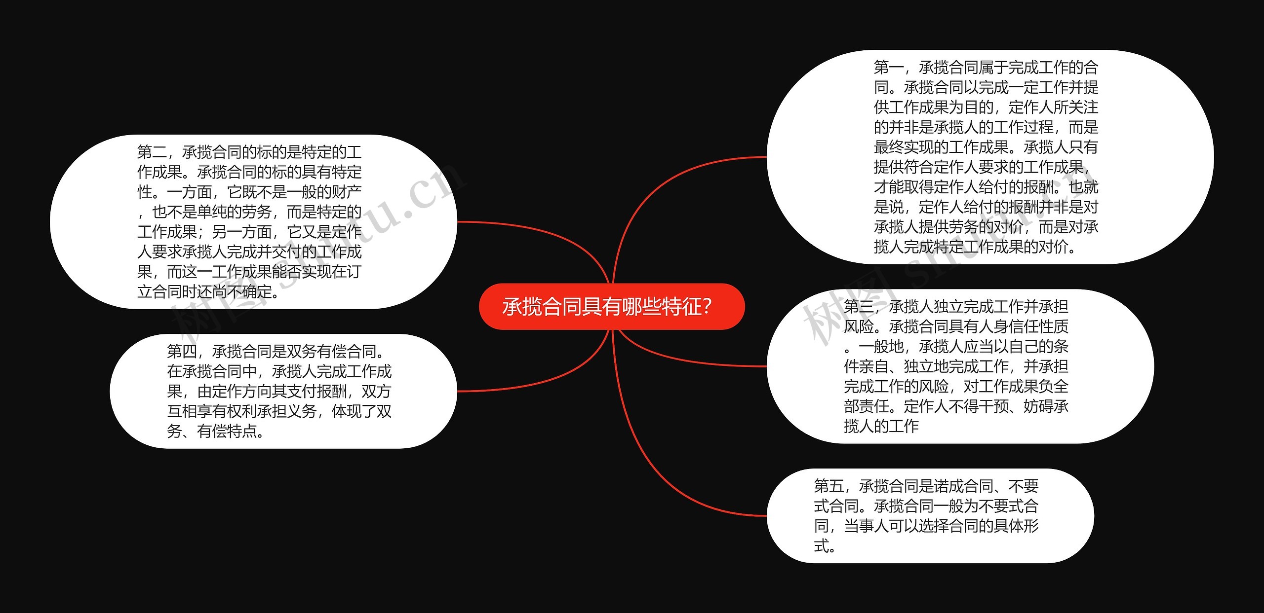 第二,承揽合同的标的是特定的工作成果。承揽合同的标的具有特定性。一方面,它既不是一般的财产,也不是单纯的劳务,而是特定的工作成果;另一方面,它又是定作人要求承揽人完成并交付的工作成果,而这一工作成果能否实现在订立合同时还尚不确定。
