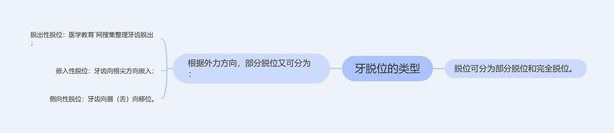 树图思维导图提供《牙脱位的类型》在线思维导图免费制作,点击“编辑”按钮,可对《牙脱位的类型》进行在线思维导图编辑,本思维导图属于思维导图模板主题,文件编号是:ea5a78d60ee7d59f797f0059ad6e9f6d