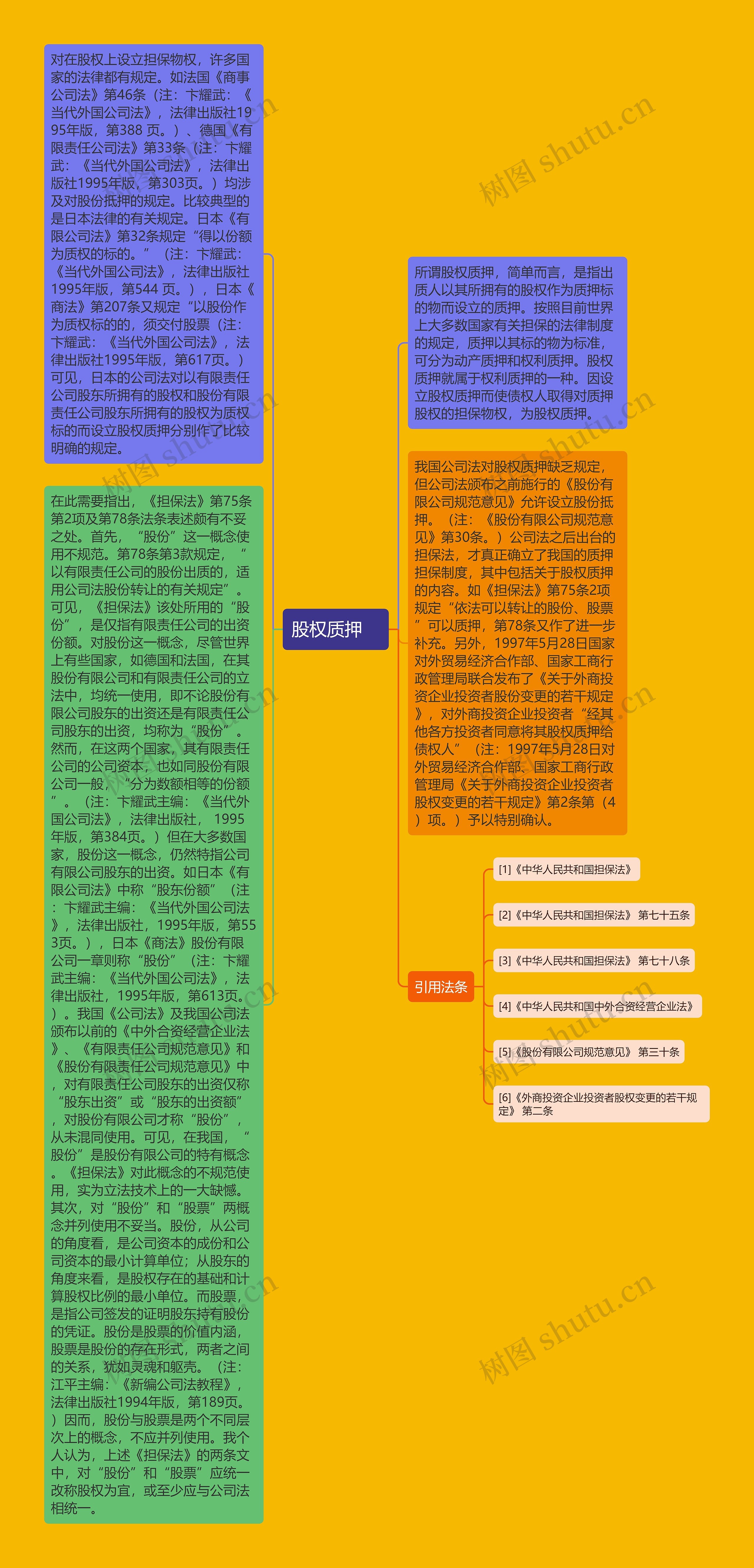 所谓股权质押,简单而言,是指出质人以其所拥有的股权作为质押标的物而设立的质押。按照目前世界上大多数国家有关担保的法律制度的规定,质押以其标的物为标准,可分为动产质押和权利质押。股权质押就属于权利质押的一种。因设立股权质押而使债权人取得对质押股权的担保物权,为股权质押。
