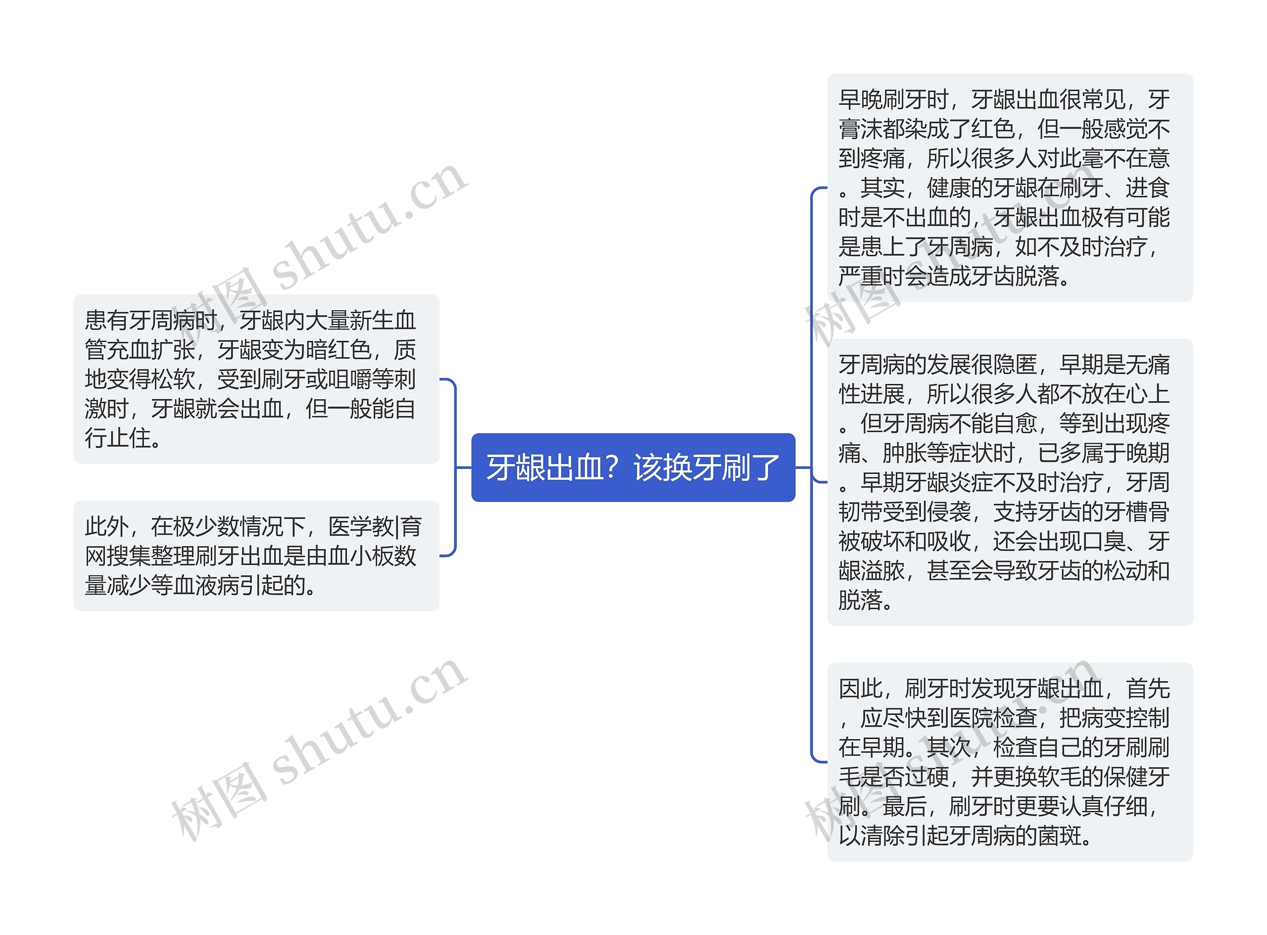 树图思维导图提供《牙龈出血?该换牙刷了》在线思维导图免费制作,点击“编辑”按钮,可对《牙龈出血?该换牙刷了》进行在线思维导图编辑,本思维导图属于思维导图模板主题,文件编号是:3feb90f02d4a0a2bc663747dd3afbc50