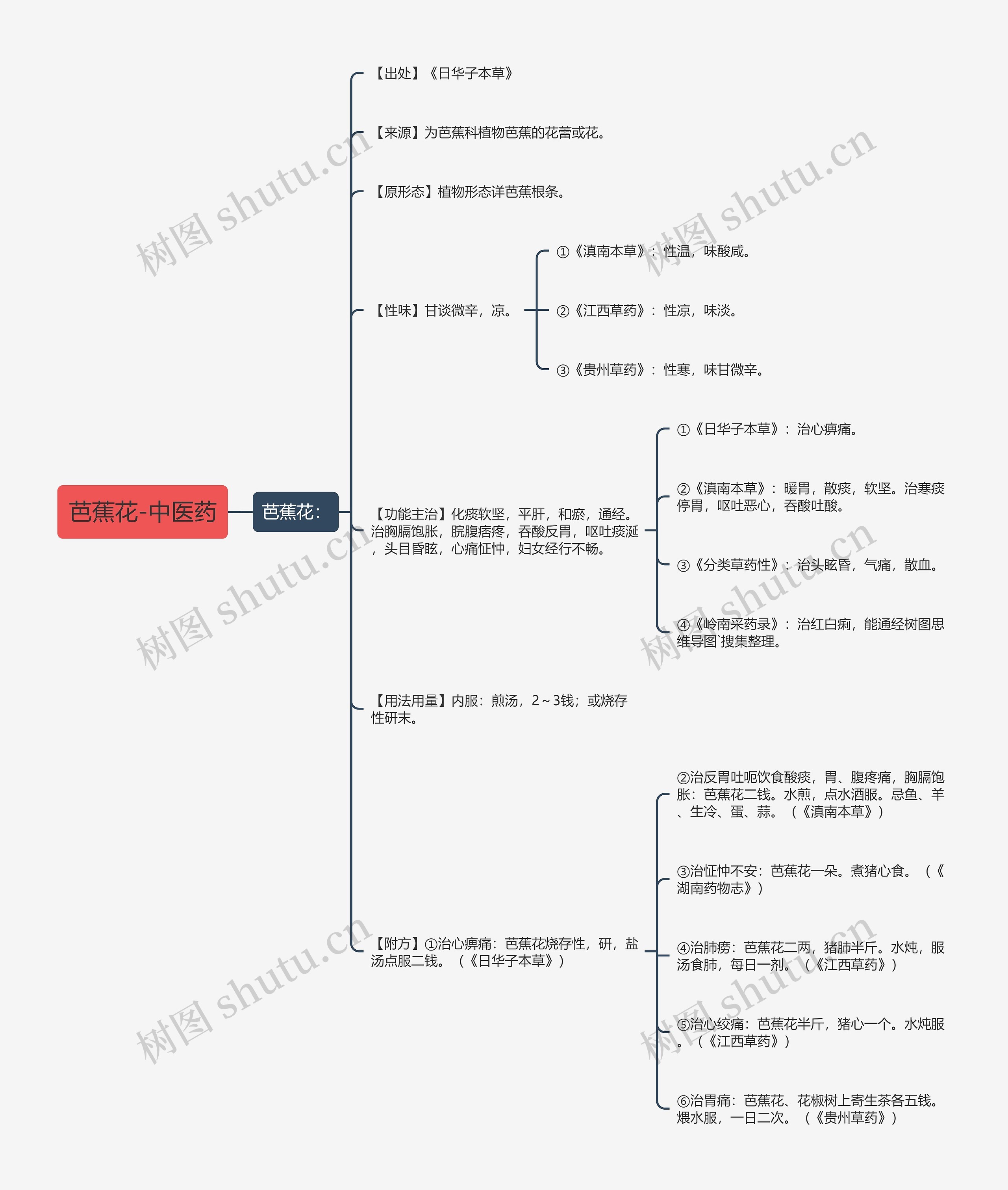 树图思维导图提供《芭蕉花-中医药》在线思维导图免费制作,点击“编辑”按钮,可对《芭蕉花-中医药》进行在线思维导图编辑,本思维导图属于思维导图模板主题,文件编号是:cfd04c8773257003e612d8545ede926e