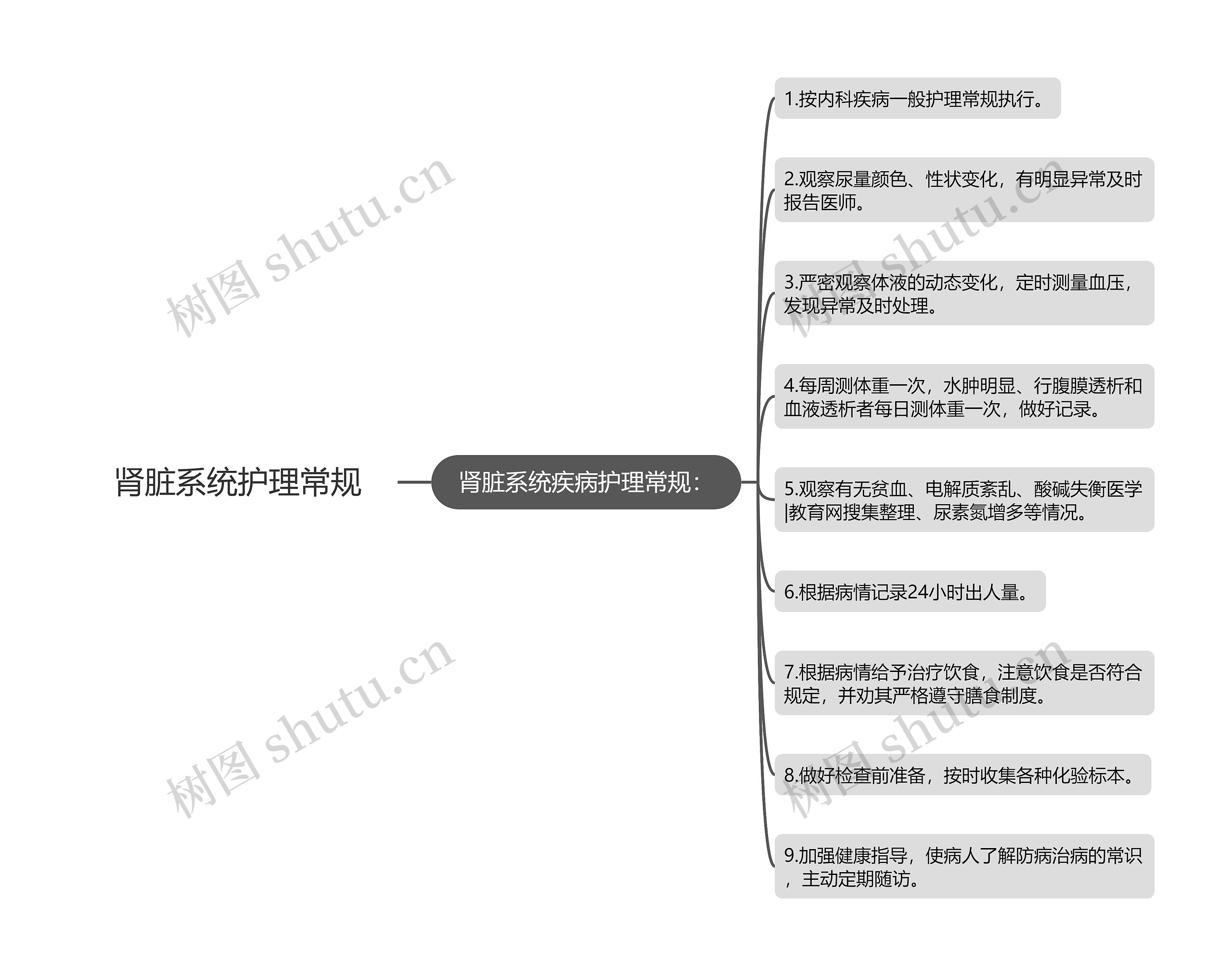 树图思维导图提供《肾脏系统护理常规》在线思维导图免费制作,点击“编辑”按钮,可对《肾脏系统护理常规》进行在线思维导图编辑,本思维导图属于思维导图模板主题,文件编号是:4d656c0ed2a0100455a005ed8916f57c