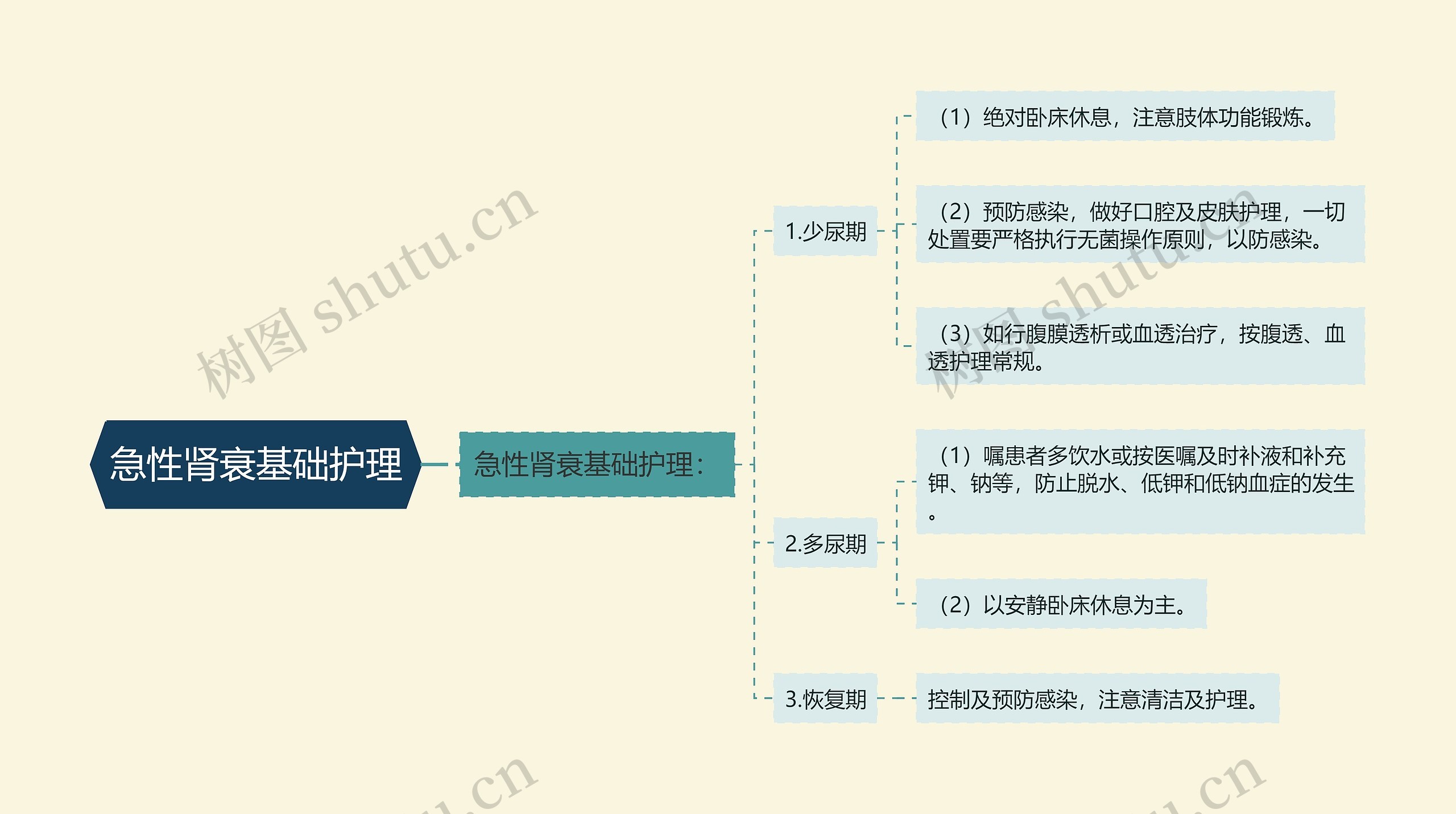 树图思维导图提供《急性肾衰基础护理》在线思维导图免费制作,点击“编辑”按钮,可对《急性肾衰基础护理》进行在线思维导图编辑,本思维导图属于思维导图模板主题,文件编号是:e6d703f9c596226b3dab0845c71de00f