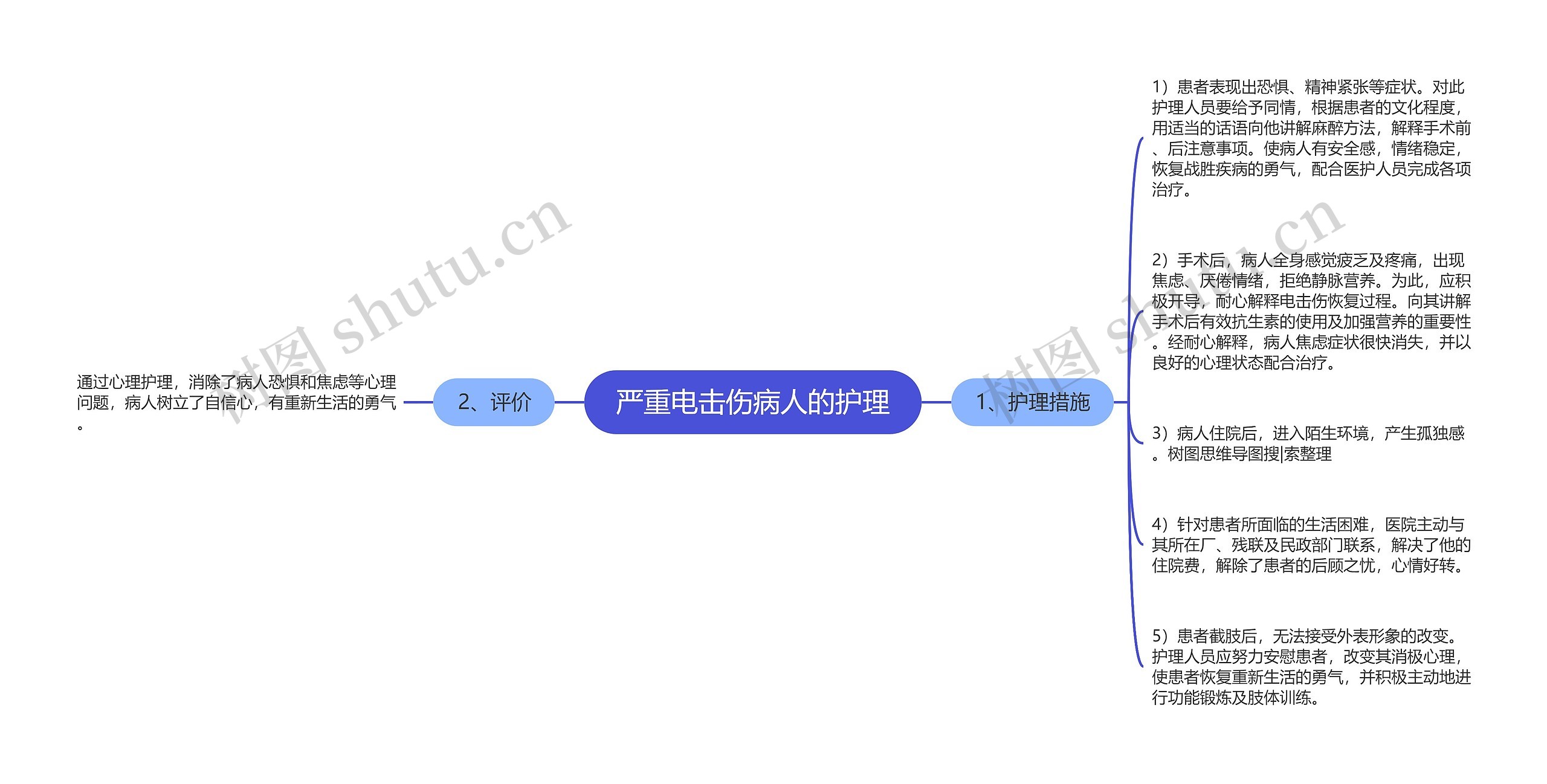 树图思维导图提供《严重电击伤病人的护理》在线思维导图免费制作,点击“编辑”按钮,可对《严重电击伤病人的护理》进行在线思维导图编辑,本思维导图属于思维导图模板主题,文件编号是:76f76b062ee4076f01c8ff6857cc2b99