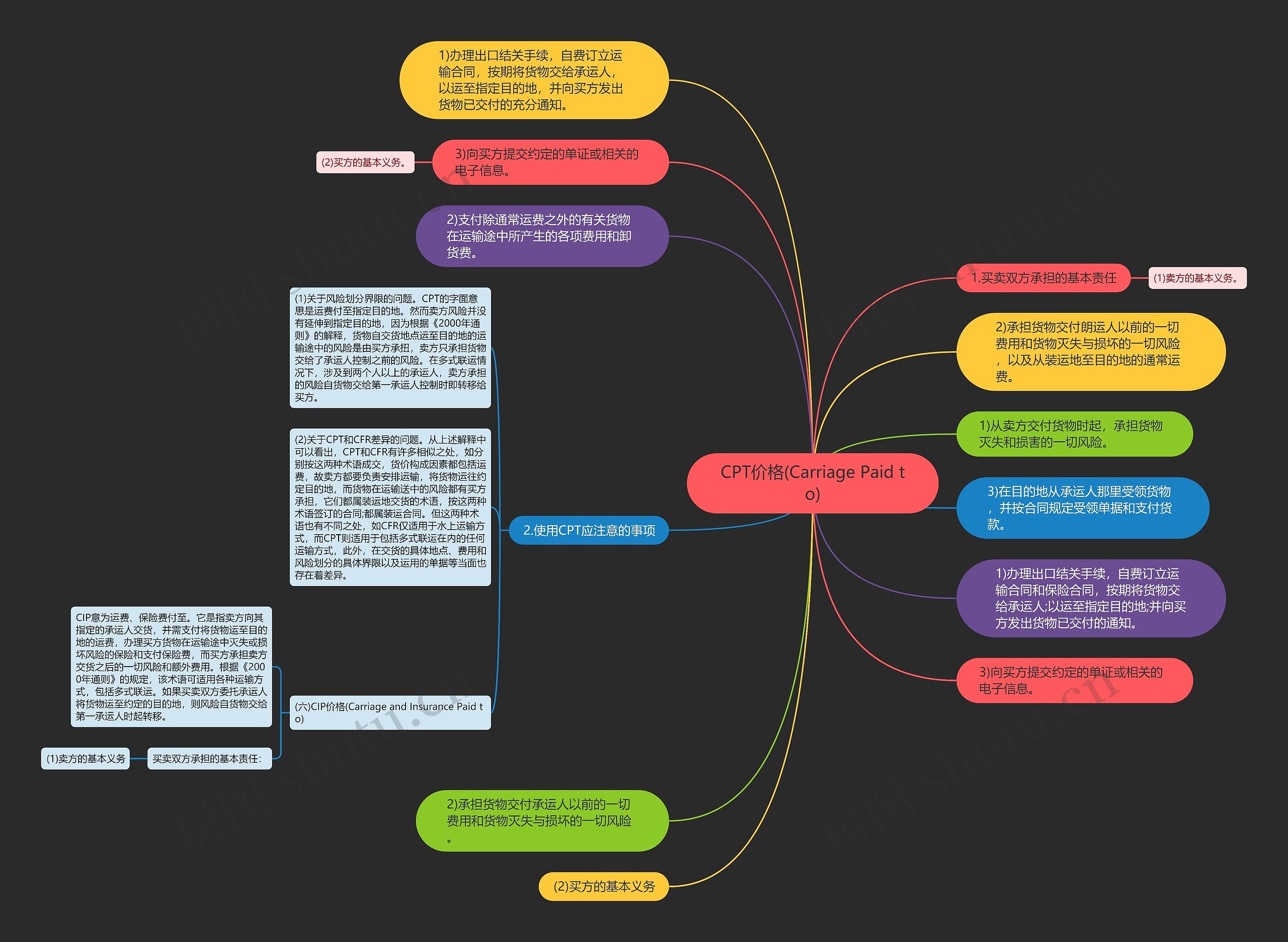 (1)关于风险划分界限的问题。CPT的字面意思是运费付至指定目的地。然而卖方风险并没有延伸到指定目的地,因为根据《2000年通则》的解释,货物自交货地点运至目的地的运输途中的风险是由买方承扭,卖方只承担货物交给了承运人控制之前的风险。在多式联运情况下,涉及到两个人以上的承运人,卖方承担的风险自货物交给第一承运人控制时即转移给买方。