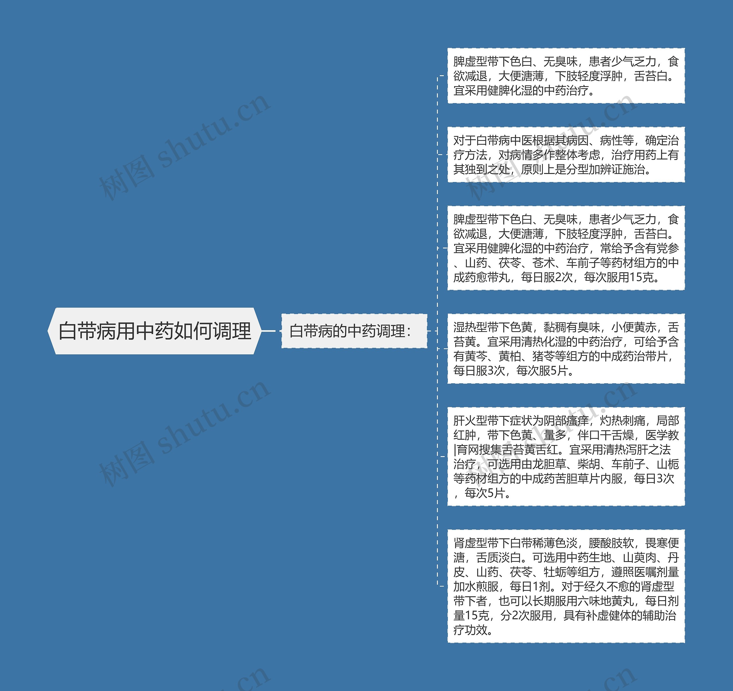 对于白带病中医根据其病因、病性等,确定治疗方法,对病情多作整体考虑,治疗用药上有其独到之处,原则上是分型加辨证施治。