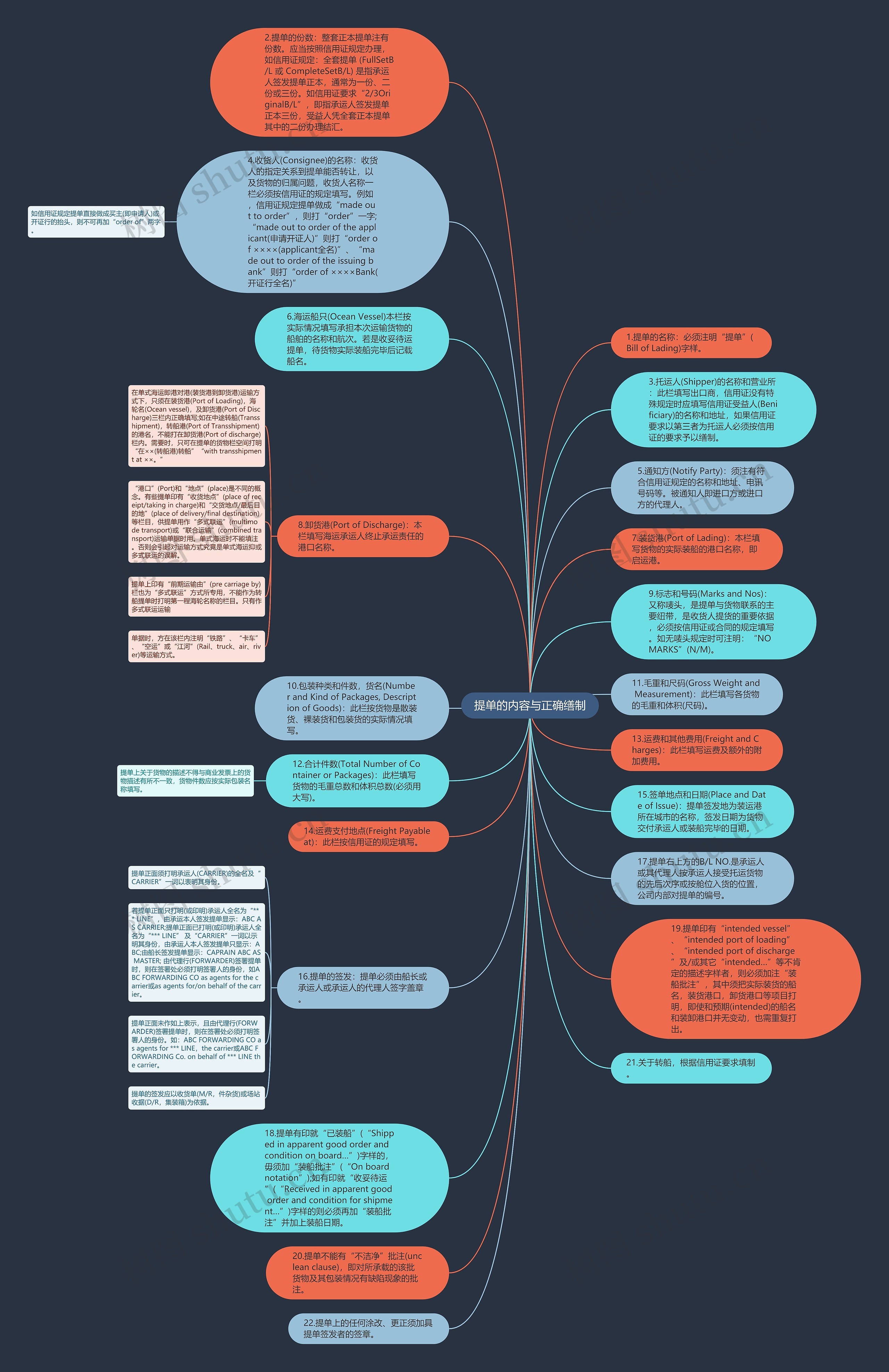 15.签单地点和日期(Place and Date of Issue):提单签发地为装运港所在城市的名称,签发日期为货物交付承运人或装船完毕的日期。