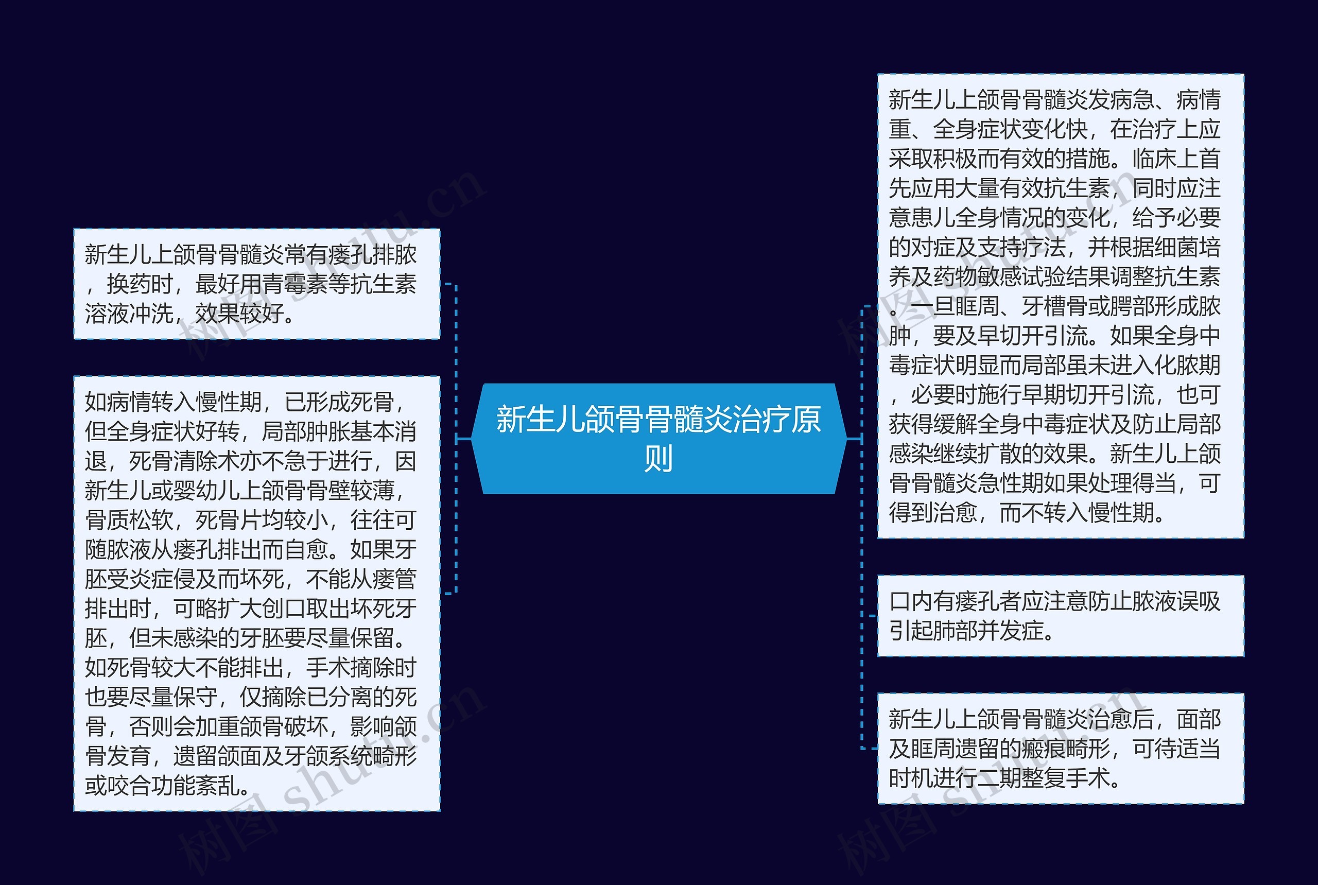 树图思维导图提供《新生儿颌骨骨髓炎治疗原则》在线思维导图免费制作,点击“编辑”按钮,可对《新生儿颌骨骨髓炎治疗原则》进行在线思维导图编辑,本思维导图属于思维导图模板主题,文件编号是:9108a94a6cadf364217695505bb68b38