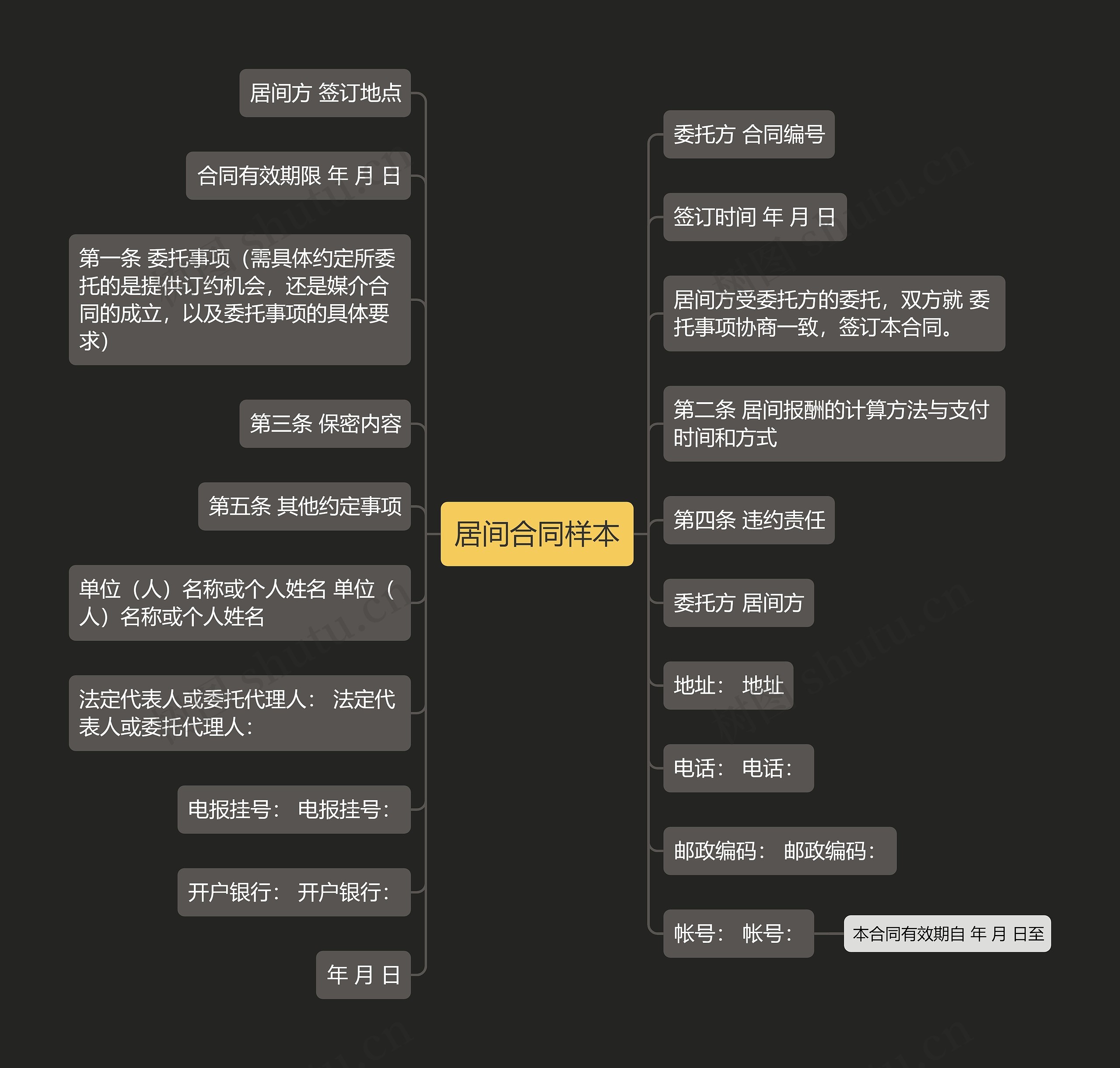 树图思维导图提供《居间合同样本》在线思维导图免费制作,点击“编辑”按钮,可对《居间合同样本》进行在线思维导图编辑,本思维导图属于思维导图模板主题,文件编号是:40afe5190caceeb07ede8d8480a0e980