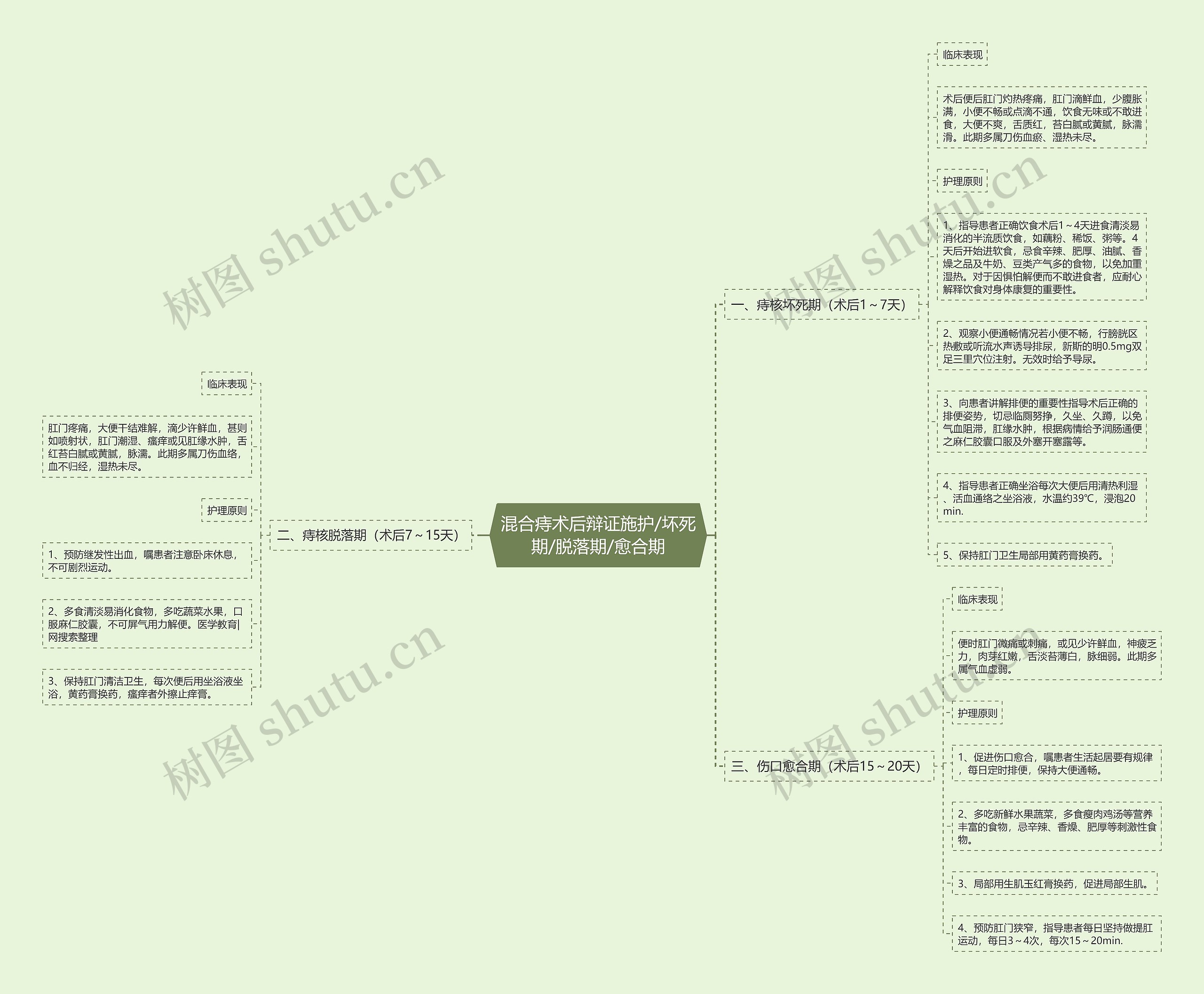 树图思维导图提供《混合痔术后辩证施护/坏死期/脱落期/愈合期》在线思维导图免费制作,点击“编辑”按钮,可对《混合痔术后辩证施护/坏死期/脱落期/愈合期》进行在线思维导图编辑,本思维导图属于思维导图模板主题,文件编号是:b4bad7d1c356c8ff06906e06c097518d