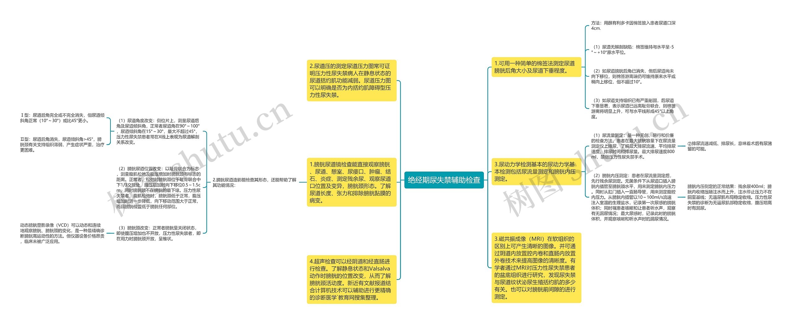 (1)尿流量测定:是一种无创、易行和价廉的检查方法。患者在最大膀胱容量下在尿流量测定仪上排尿,了解最大排尿流速、平均排尿速度、排尿时间和排尿量。最大排尿速度800ml,禁做压力性尿失禁手术。
