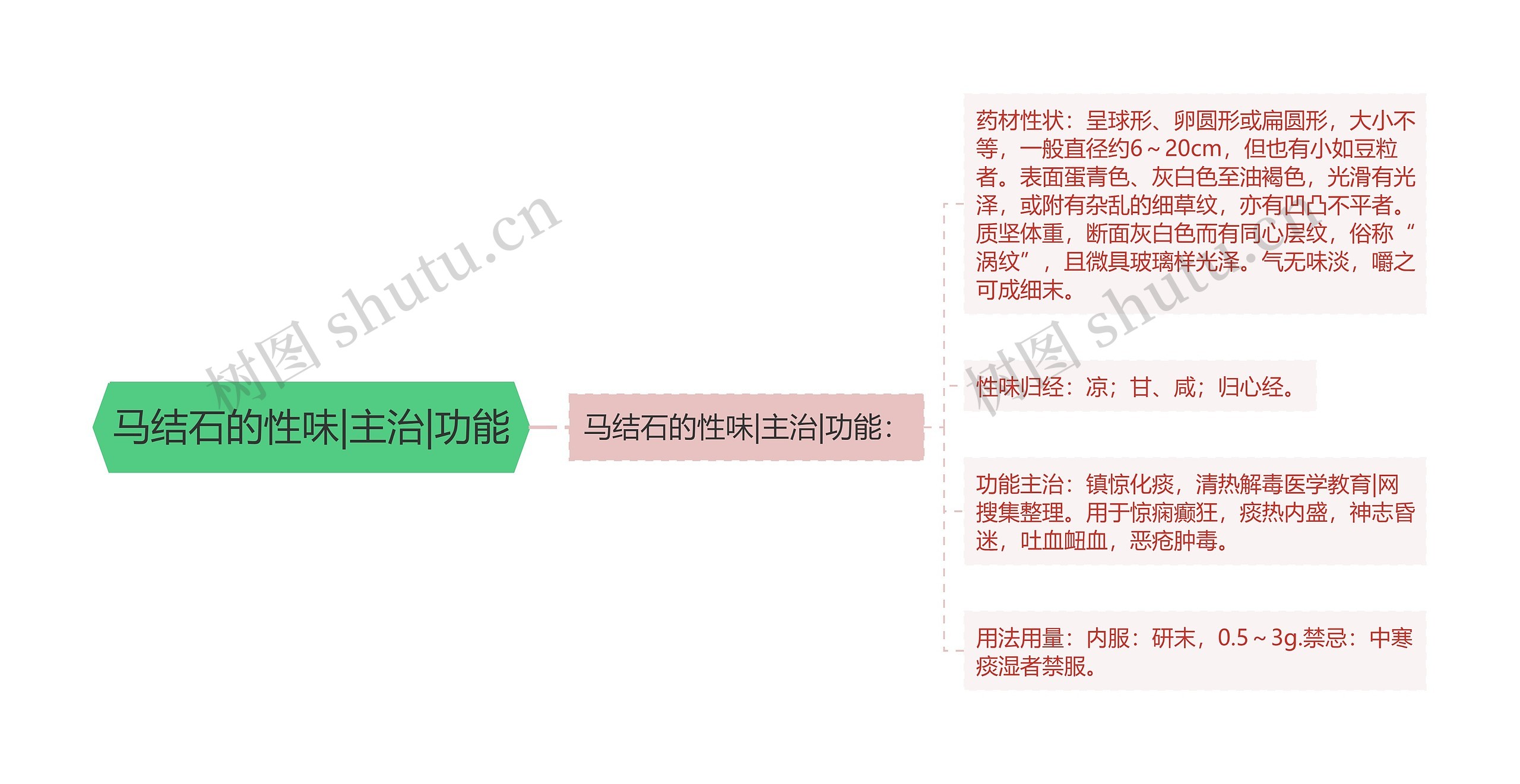 树图思维导图提供《马结石的性味|主治|功能》在线思维导图免费制作,点击“编辑”按钮,可对《马结石的性味|主治|功能》进行在线思维导图编辑,本思维导图属于思维导图模板主题,文件编号是:8683a2637f0cef1b75986f5b6c20d752