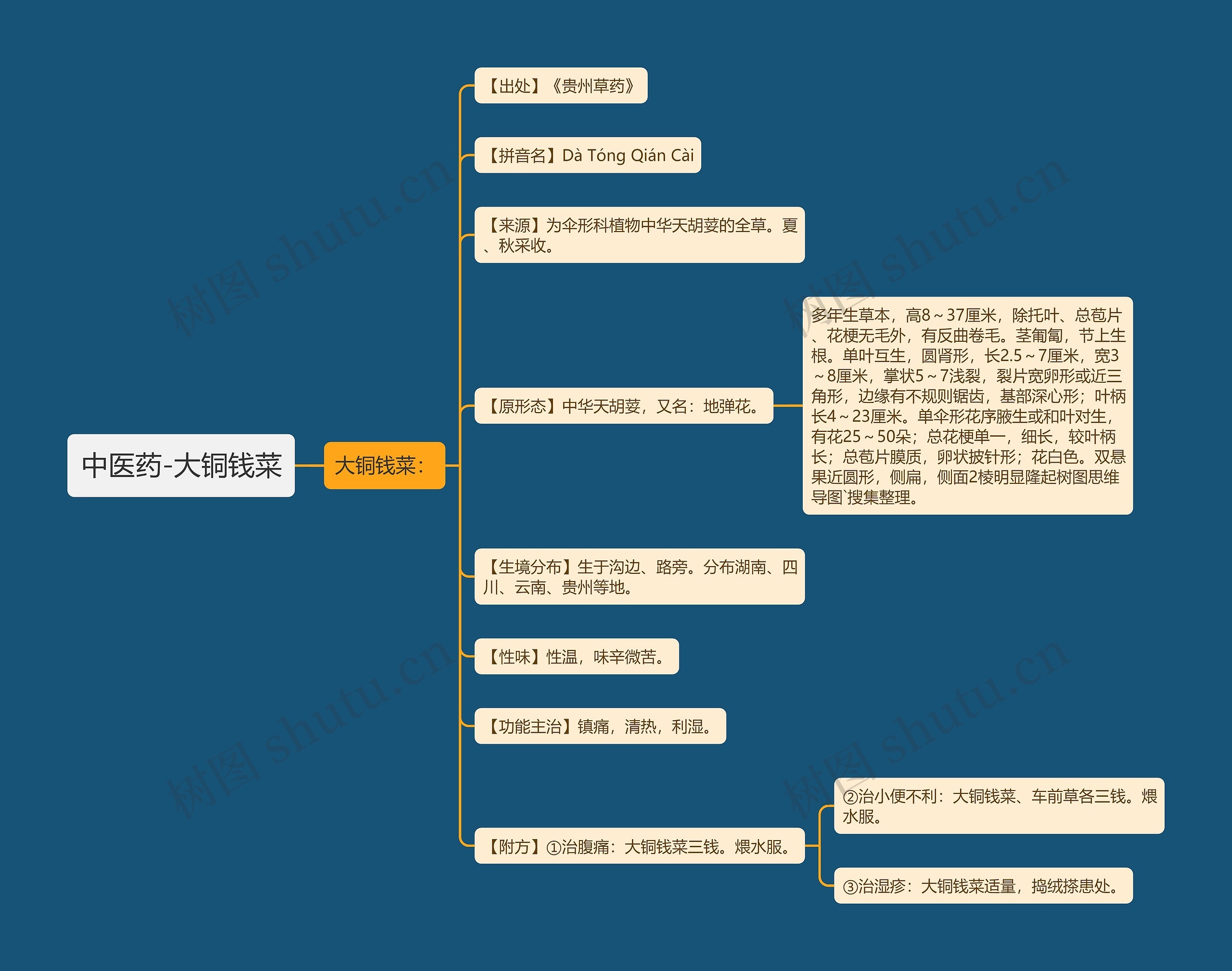树图思维导图提供《中医药-大铜钱菜》在线思维导图免费制作,点击“编辑”按钮,可对《中医药-大铜钱菜》进行在线思维导图编辑,本思维导图属于思维导图模板主题,文件编号是:f43a69712a9d54e7edb6dae8e7169645