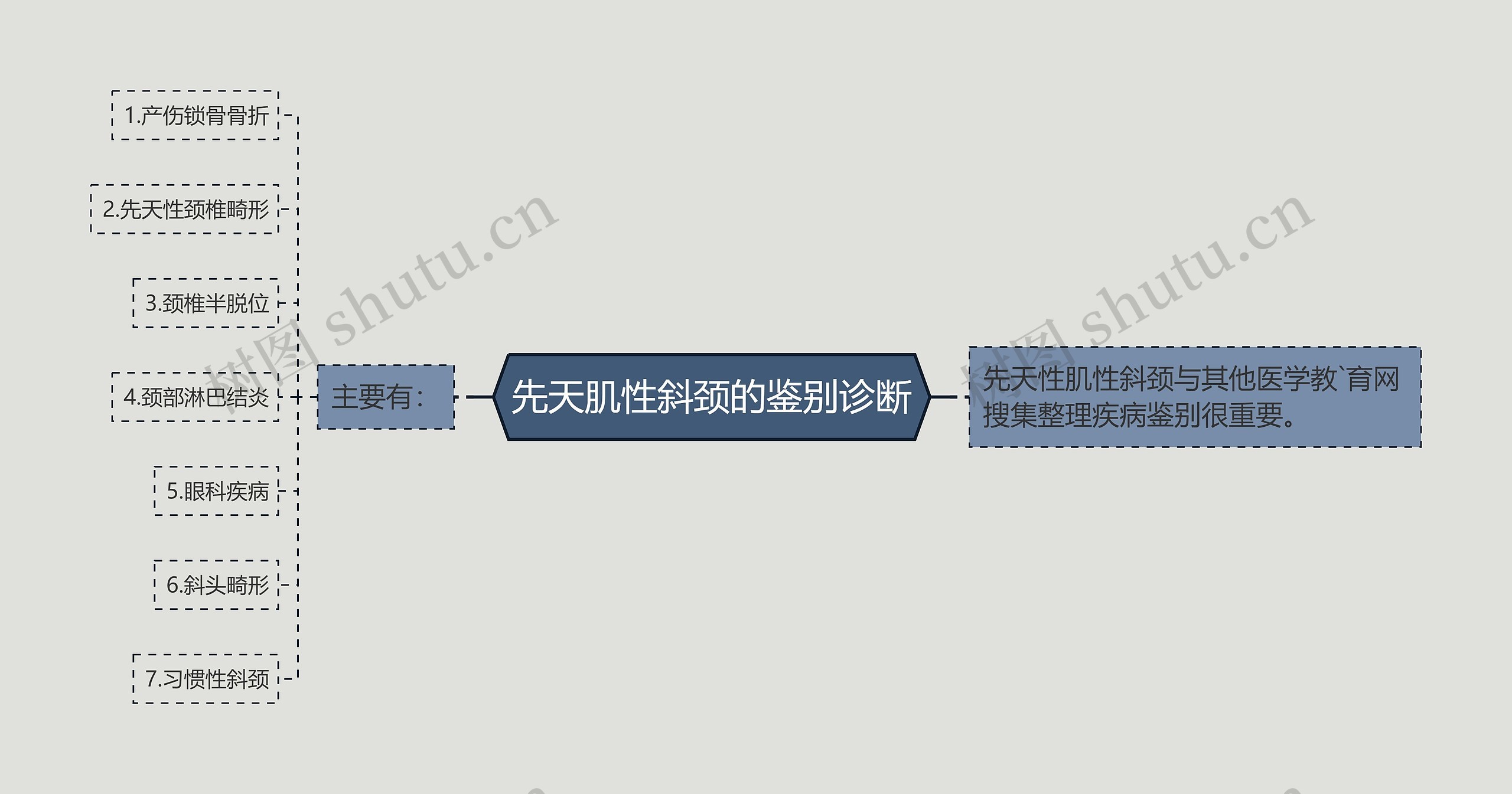 树图思维导图提供《先天肌性斜颈的鉴别诊断》在线思维导图免费制作,点击“编辑”按钮,可对《先天肌性斜颈的鉴别诊断》进行在线思维导图编辑,本思维导图属于思维导图模板主题,文件编号是:0cfa61f46a9e795629057391a2b7e40e